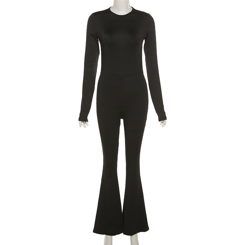 Black Backless Long Sleeve Jumpsuit with Polyester Spandex Material