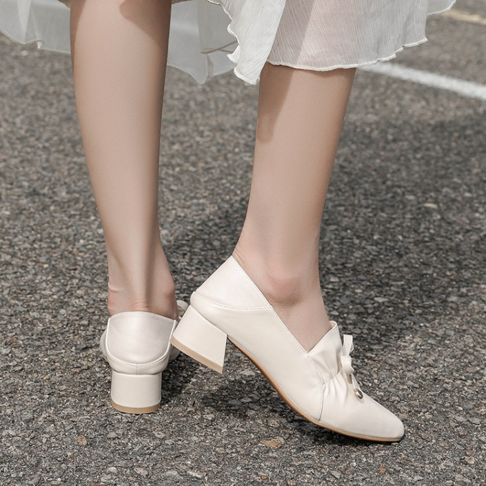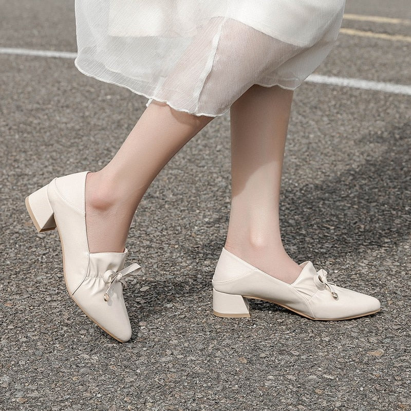 These pump shoes with their square heels are perfect for a walk in spring. The soft beige color complements the feminine design. It is also easy to match with your favorite day dress. These shoes will be an instant favorite in your collection.