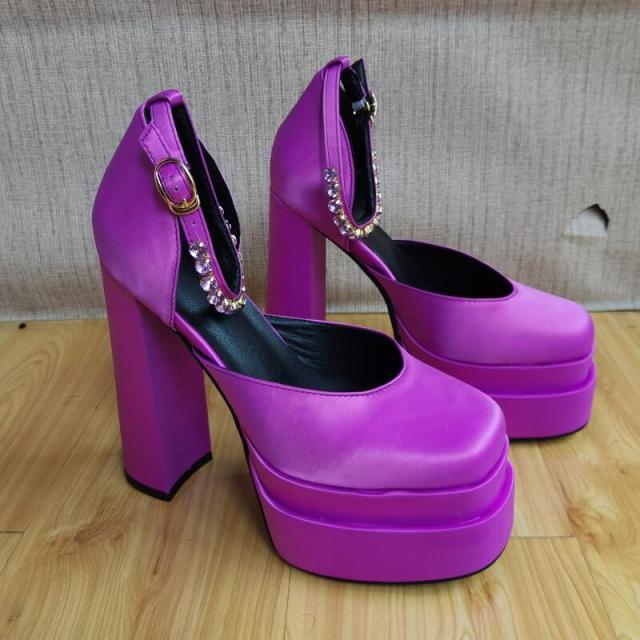 These fashionable shoes are your go-to pair for all of your favorite spring outfits. The simple but trendy design will make you look the best. Featuring a round toe and a platform, this super comfortable shoe is a must-have for the fashionable woman. A stylish ankle strap with rhinestone decoration adds a touch of glamour.