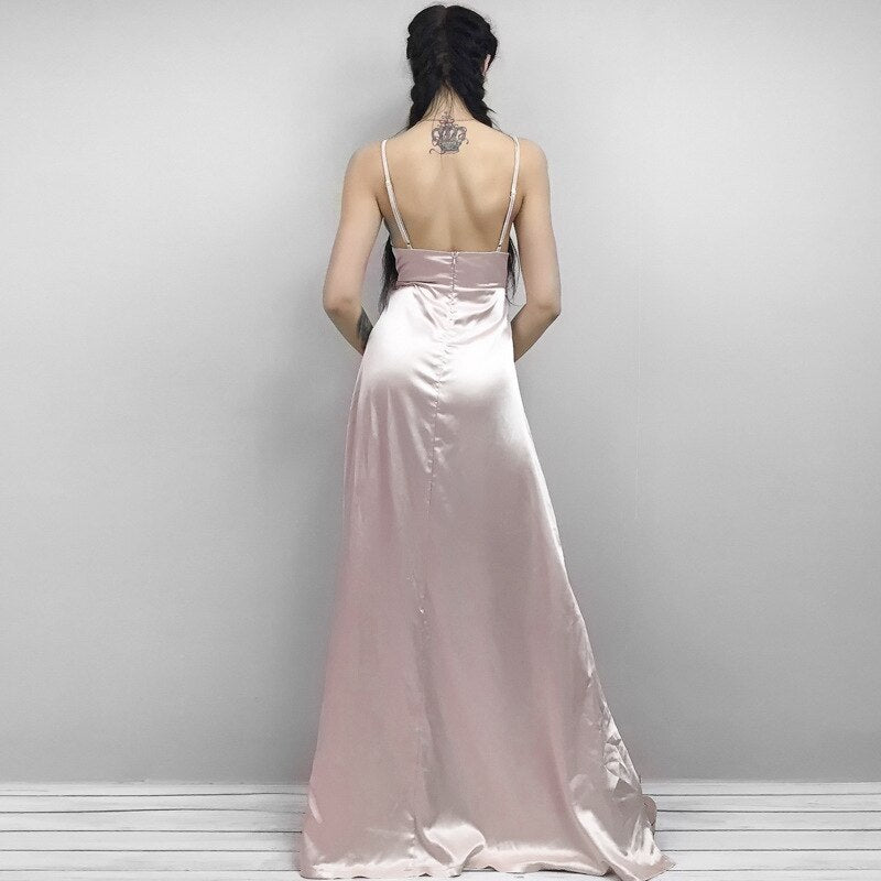 Dress up in this chic yet timeless long dress that has a fitted, polyester fabric that is solid in color. The spaghetti straps and A-line design are perfect for an evening out on the town. Pair this dress with your favorite black heels and pearl earrings for a polished look.