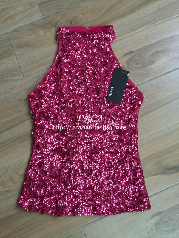 A chic women's tank top with a sparkling sequin design that adds glamour to your look. With an eye-catching sequin design, stylish, and feminine style, this top is sure to steal the show. For a bold and striking look, choose a vibrant color for maximum impact. Available in a variety of colors, this tee is a versatile piece that can be worn with many different outfits.