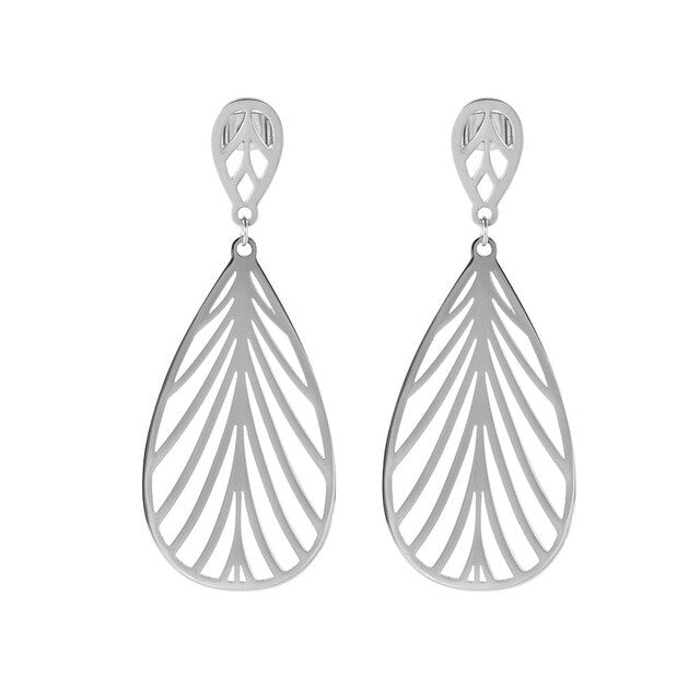 Introducing our modern stainless steel big hollow striped woman earring! Made with high-quality 316L stainless steel, these trendy drop earrings are a must-have fashion accessory for women and girls of all ages. The striped design adds a touch of elegance and style, making them perfect for any occasion, from festivals and events to daily wear and shopping outings.