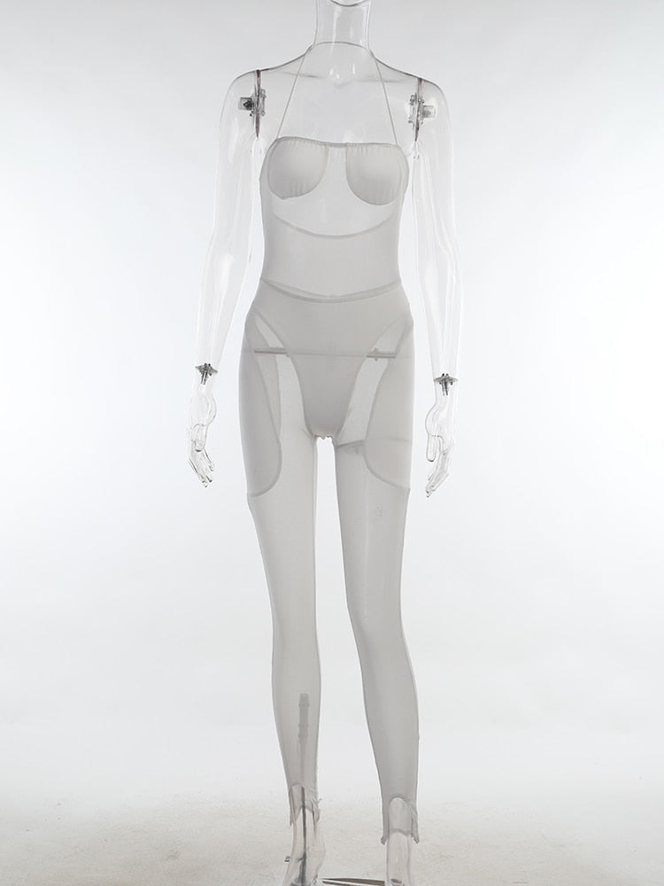 For those looking for a fashionable and comfortable way to cover up on those warm spring nights, this see-through jumpsuit is a great option. A simple halter strap provides the perfect amount of coverage and makes this jumpsuit easy to move around in. They can also be worn as a swimsuit for those sunbathing days.