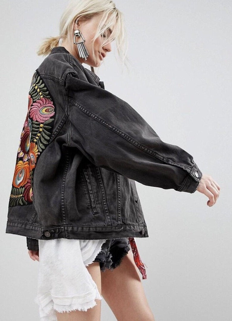 The Ocean Meets The Sky Jacket is made with 100% cotton fabric for breathability and comfort. It features a unique floral embroidery on the back, offering a subtle yet stylish statement. Ideal for outdoors and everyday use.