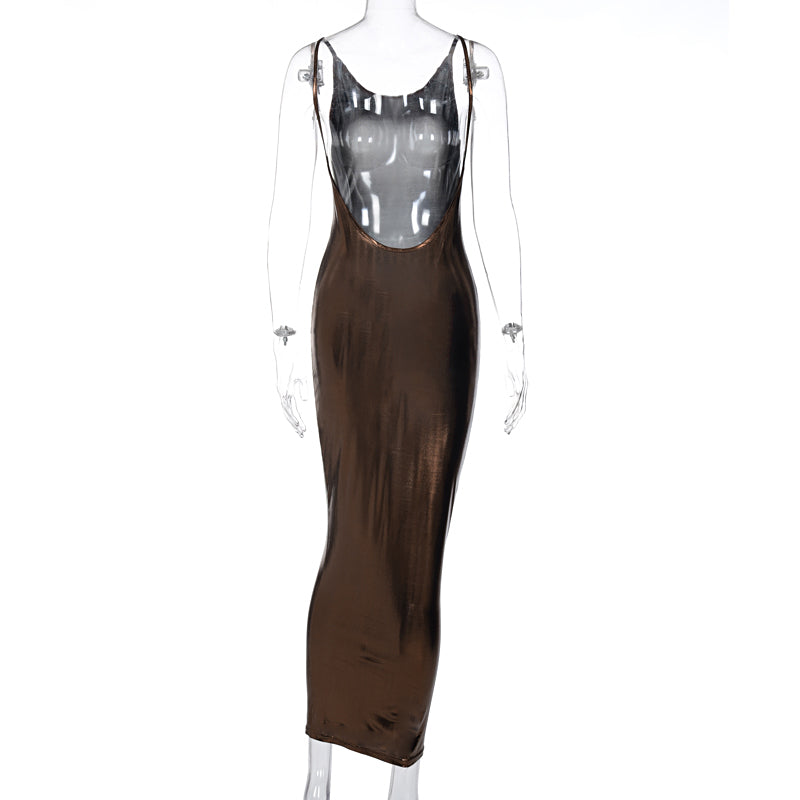 A slimming and feminine dress that's perfect for any occasion. This long, flowing evening gown makes a chic addition to your look. Streamline your body with this simple yet elegant silhouette. A sleek spaghetti strap design compliments the flowing, full-length skirt. The flattering backless design ensures she looks her best for any occasion. A simple and elegant cocktail dress that is sure to become a go-to style. This gorgeous evening dress is a great choice for dressing up or dressing down.