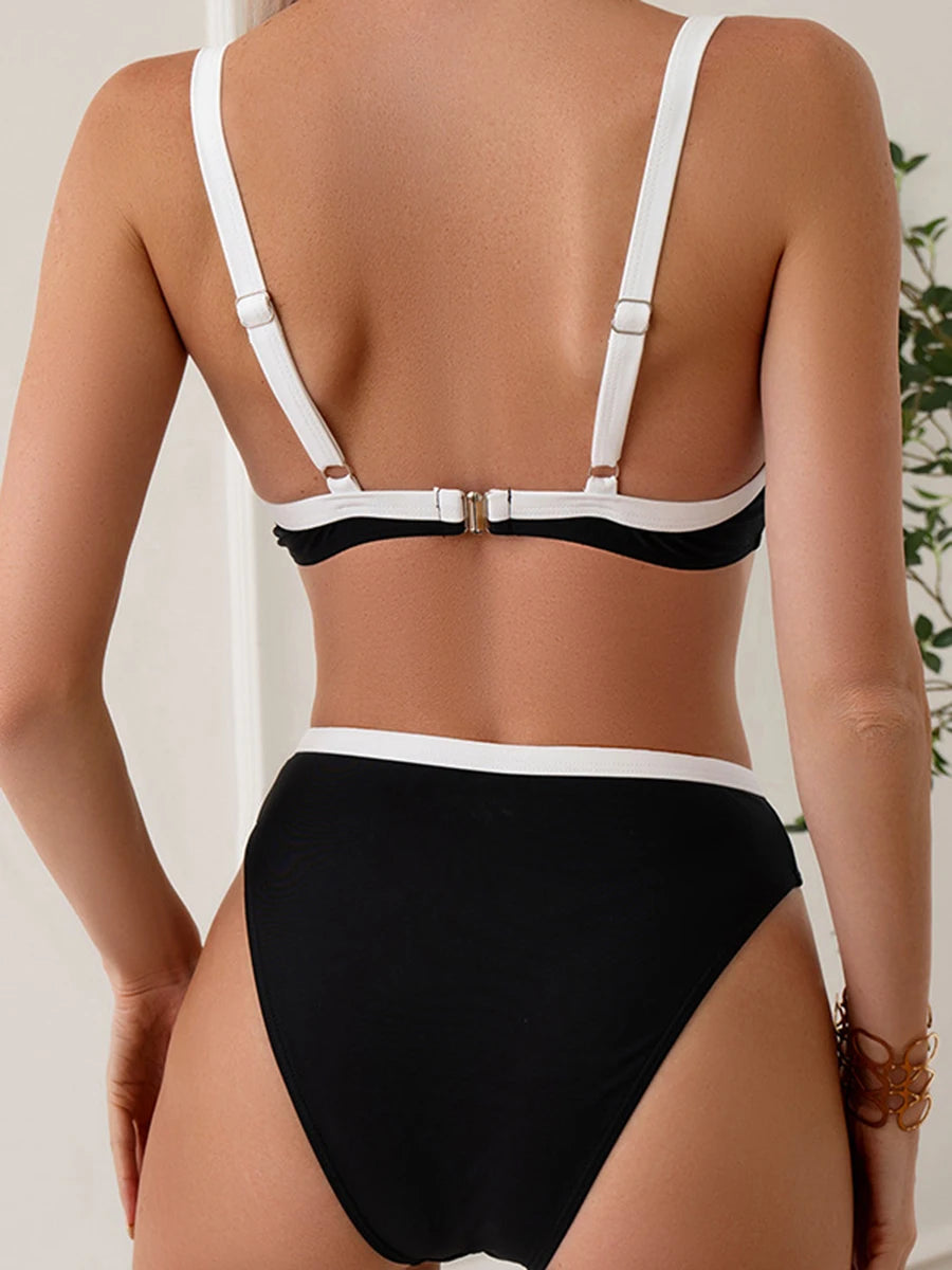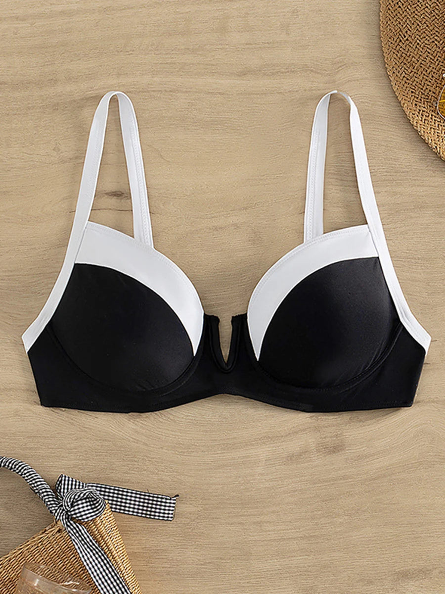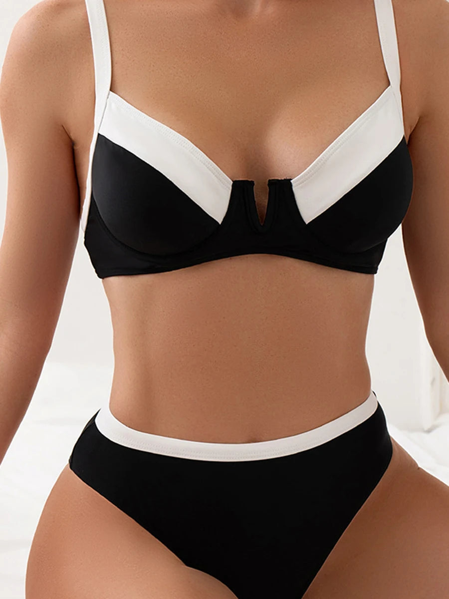 Experience a bold and confident look with our bikini set. Designed with a unique and eye-catching block color pattern, this set is made of spandex and polyester materials for maximum comfort and flexibility. Perfect for your next beach or pool day!