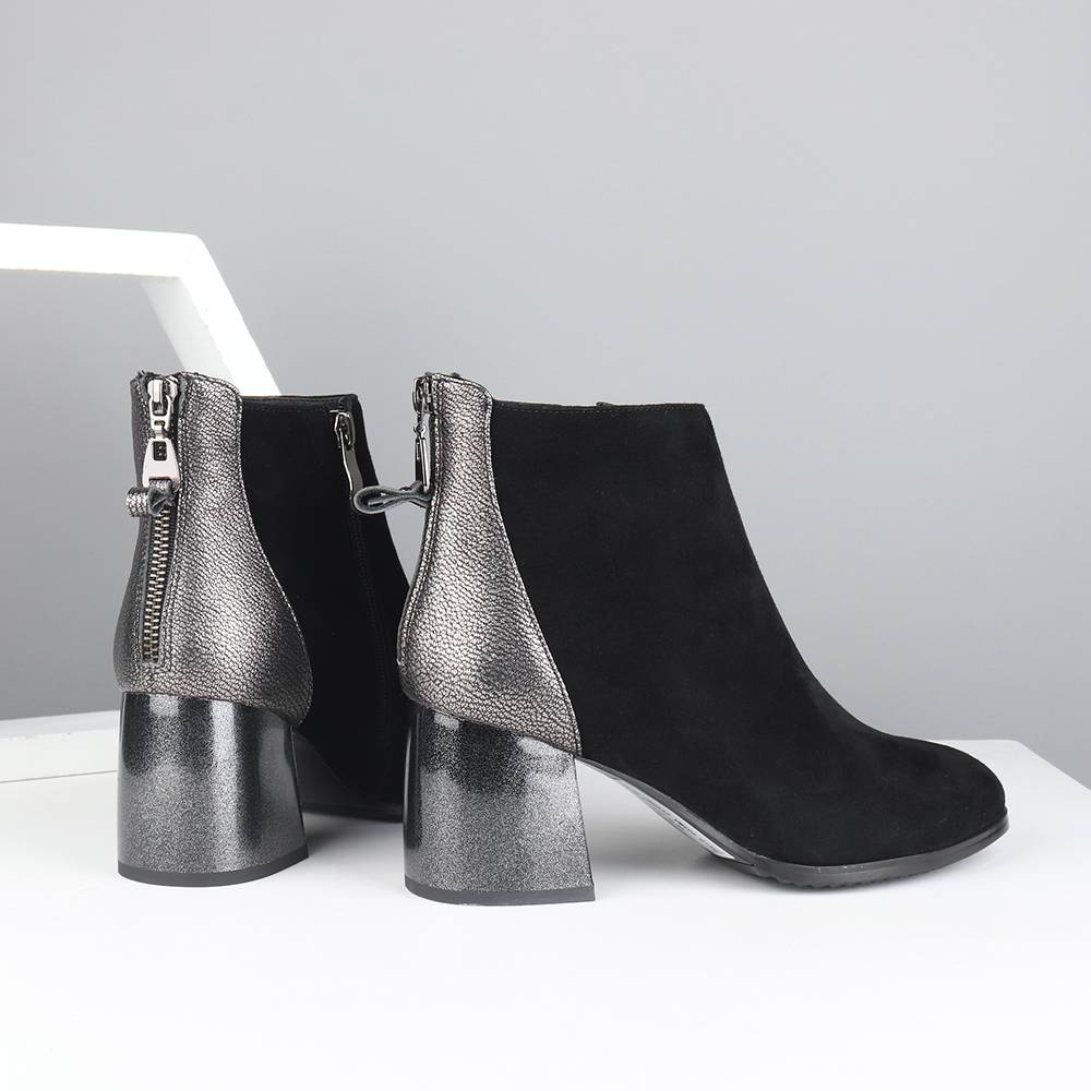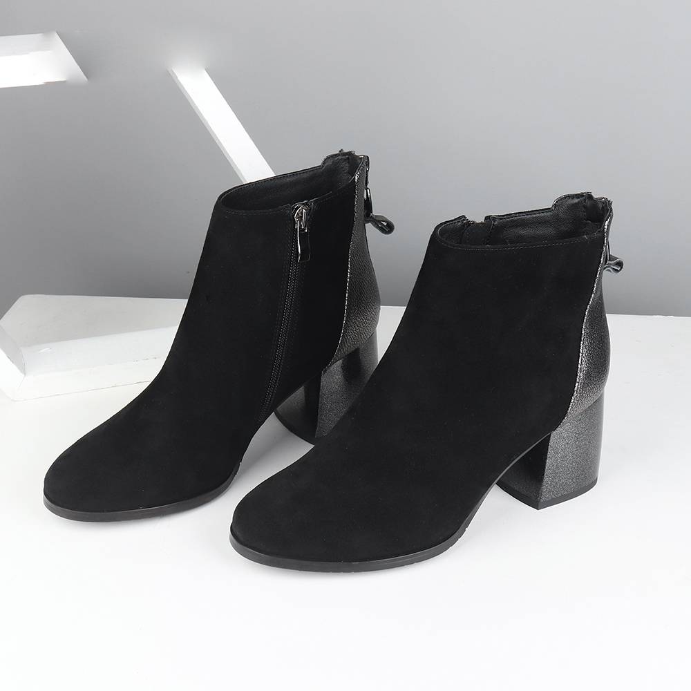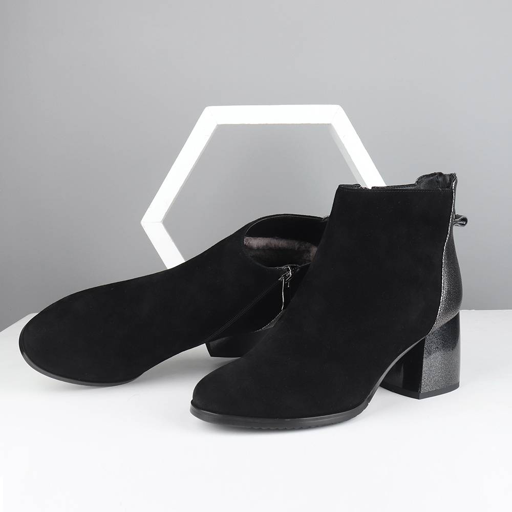 Handmade Suede Mixed Wol Square Heels Women Ankle Boot