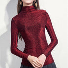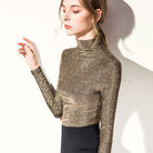 Polyester Spandex on Sparkling Turtleneck Women Shirts