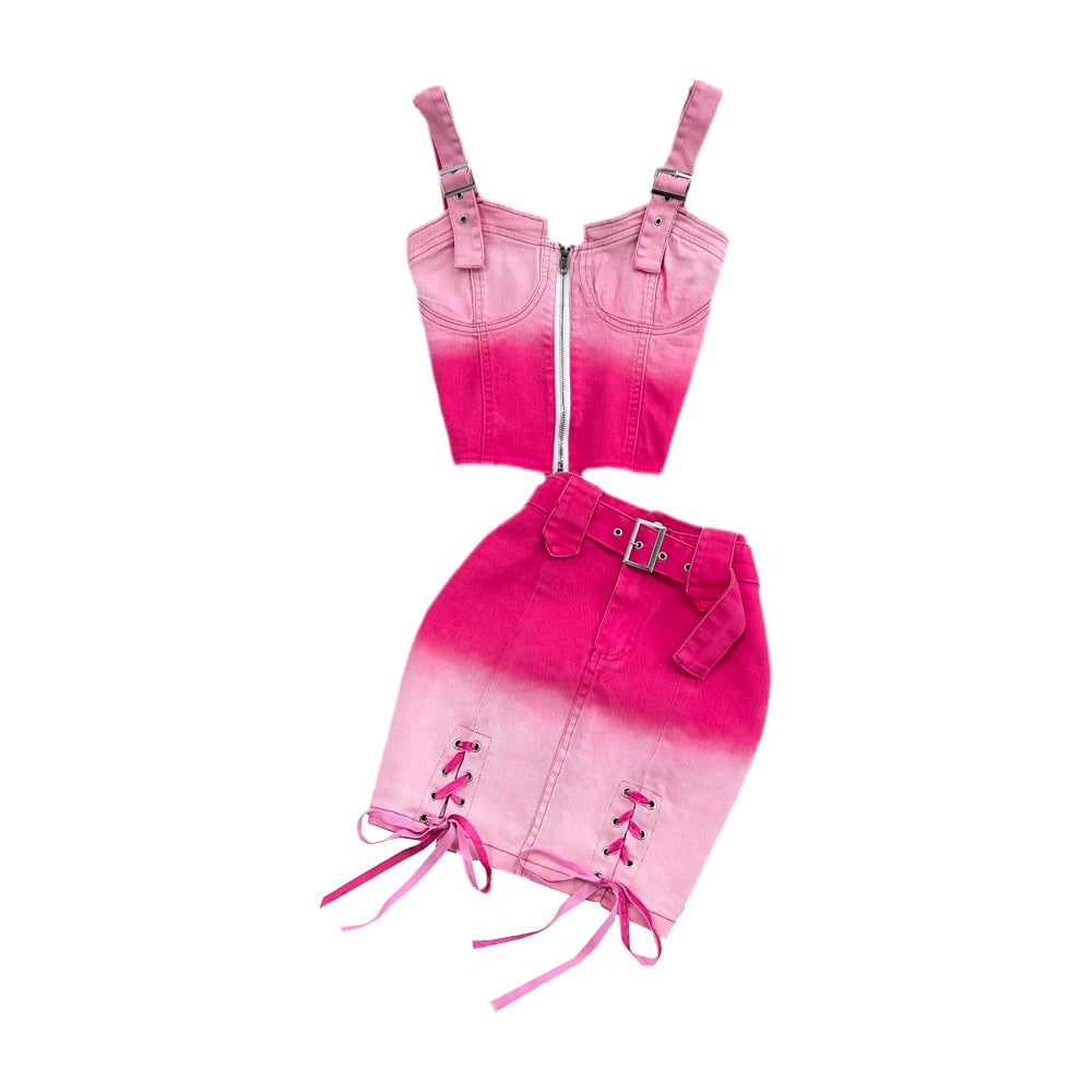 Choose a pair of denim skirts that complement a wide variety of looks. These stylish and versatile styles have been crafted to blend with a variety of other items. The trendy pink gradient coloring is a great choice for a variety of looks. Cute and comfortable, these skirts are ideal for any casual wardrobe.