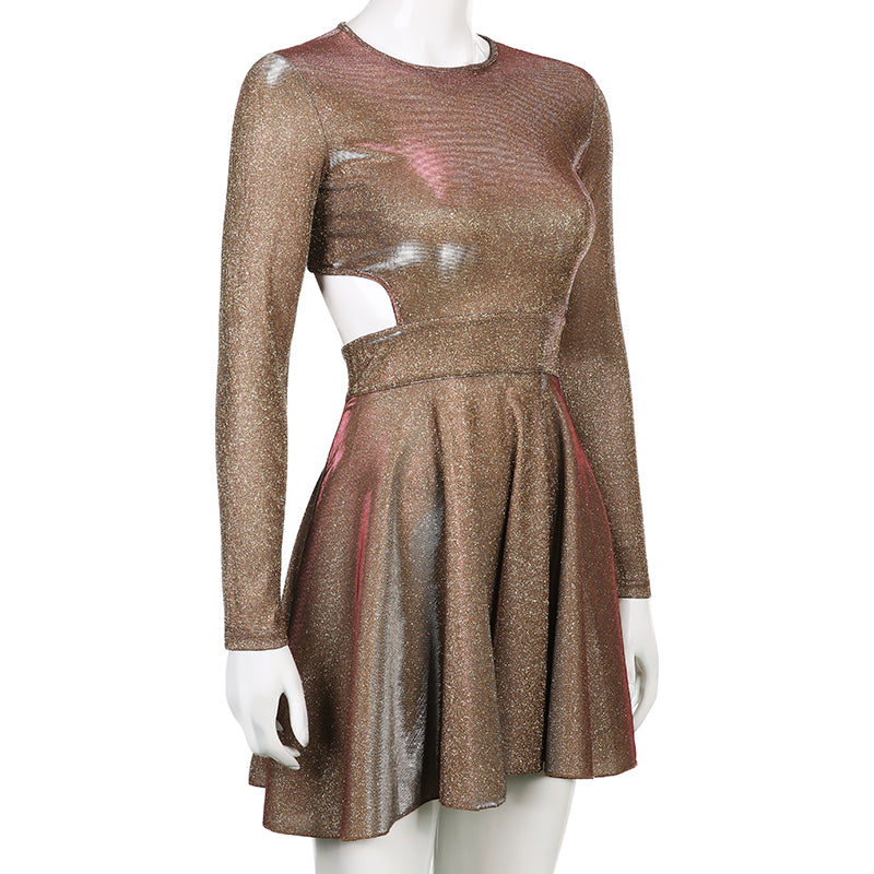 A staple piece in any chic woman's wardrobe, this long, flowing mini dress can be worn day or night. The elegant pleated design adds a sophisticated touch, while the o-neck collar and hollow-out design add a feminine twist. Long sleeves that can be rolled up for a sporty look. The perfect way to make your wardrobe stand out.