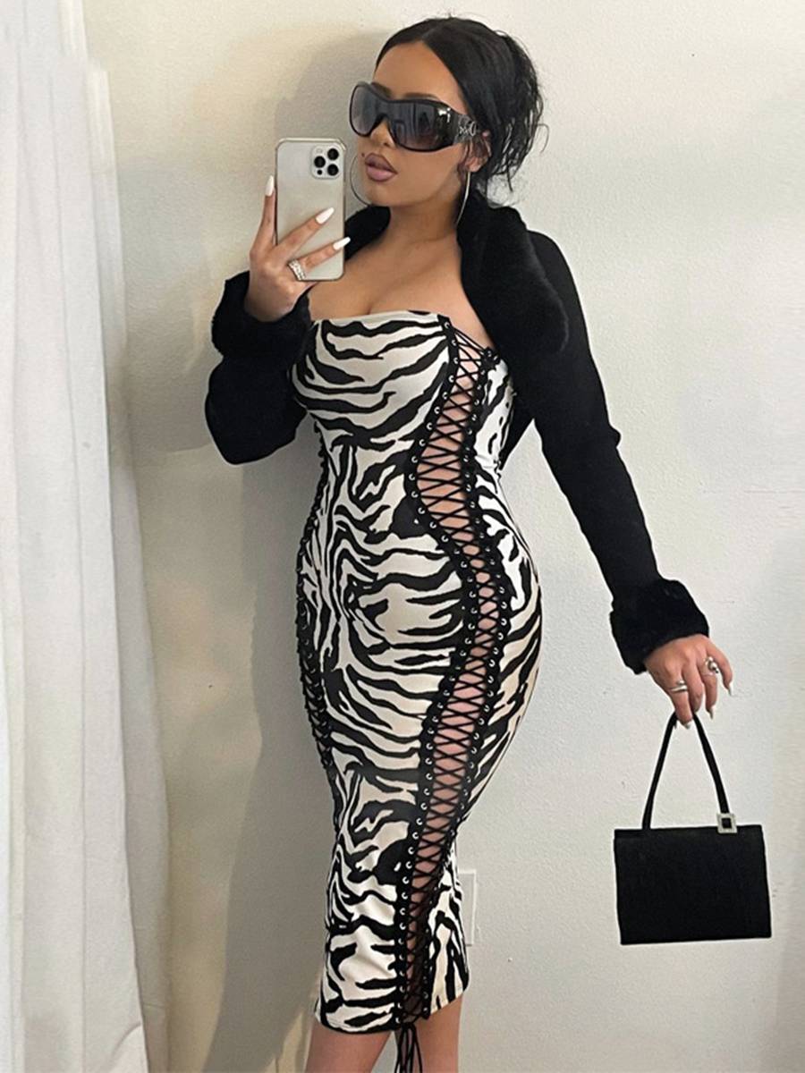 A contemporary and stylish look, you’ll love how versatile this women’s dress is. A contemporary midi-length dress, the strapless design and zebra stripes print pattern adds a feminine touch that is sure to get noticed. Wear it with a pair of sultry stilettos to complete the look. This women’s dress has a figure-flattering design that is sure to turn heads.