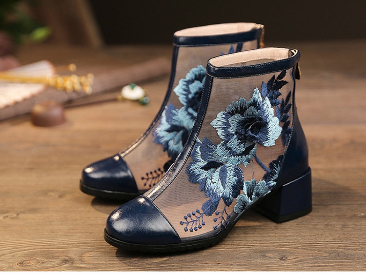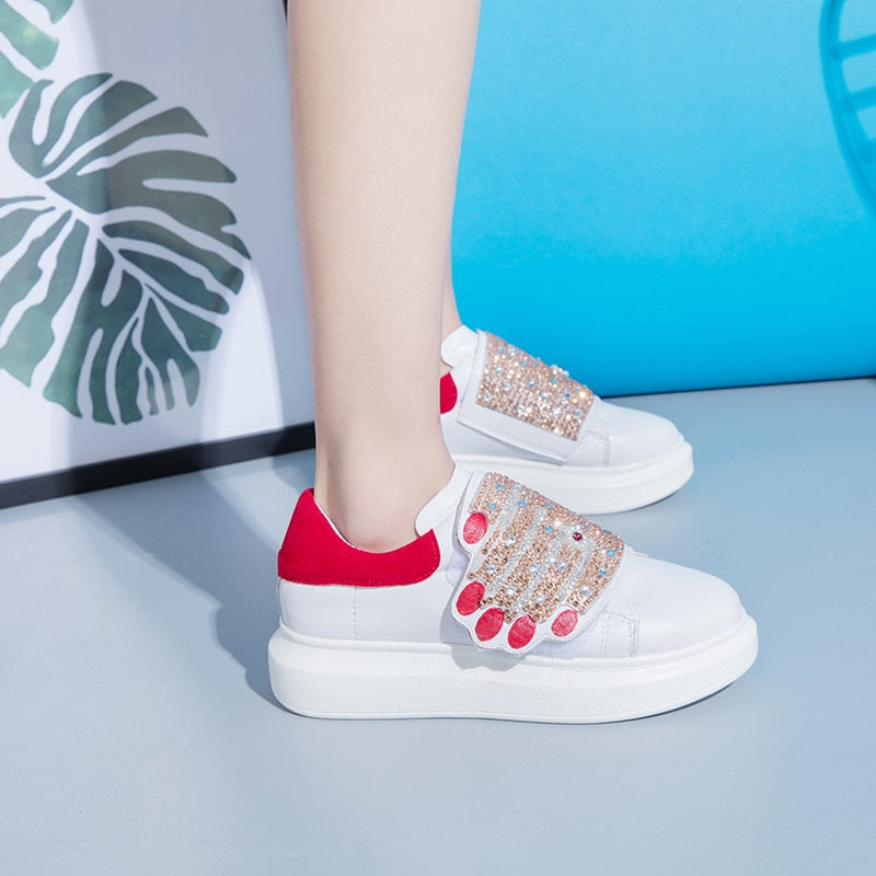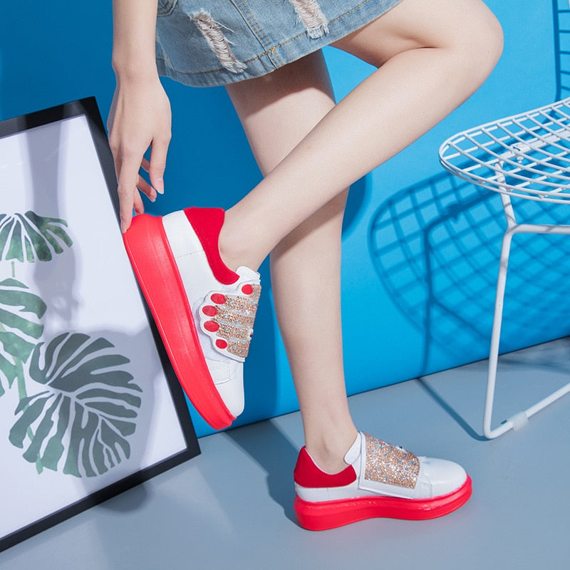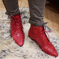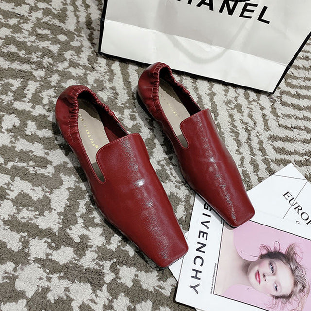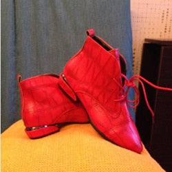 Spring Red Stud Embroidered Pointed Toe Women Flat Shoes