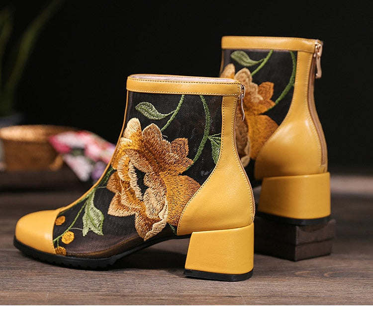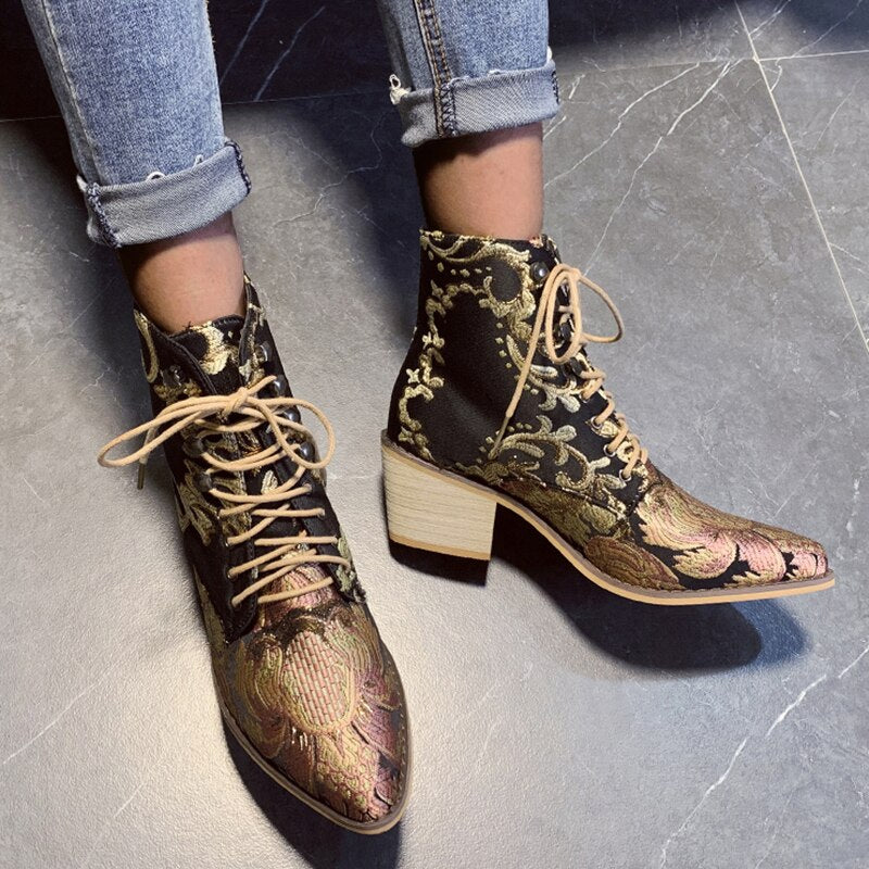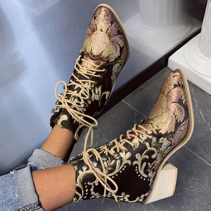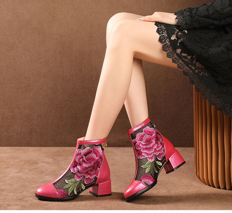 Spring Red Stud Embroidered Pointed Toe  Women Flat Shoes