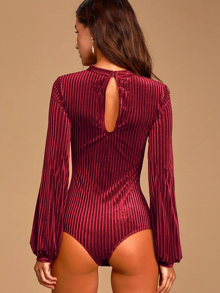 This sleek and stylish bodysuit is crafted from a blend of polyester, cotton, and spandex for a comfortable fit and durable wear. The classic striped pattern adds a timeless touch and its skinny silhouette allows it to be paired with any bottom for an effortlessly chic look.