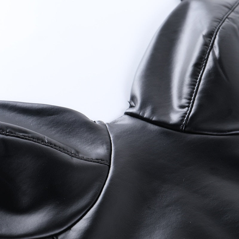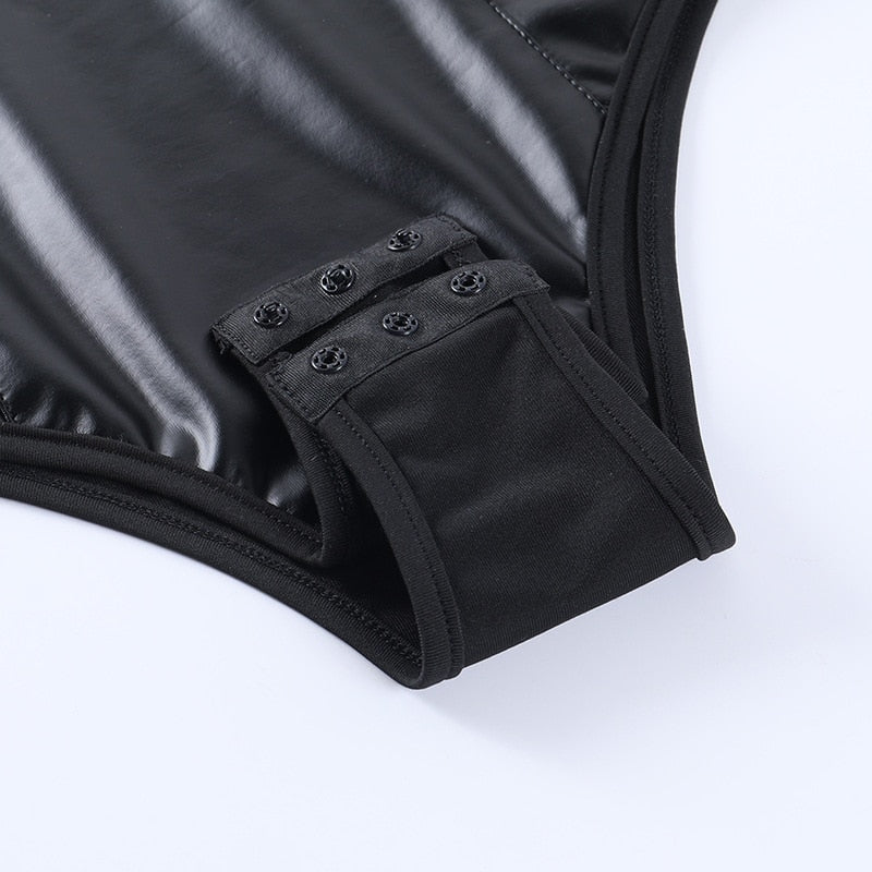 For an effortlessly chic look, try this women's leather bodysuit. The solid black color adds a bold accent to any outfit and the spaghetti straps are sexy and flirty. The fitted bodysuit is designed to hug your curves so you can feel confident and comfortable all day.