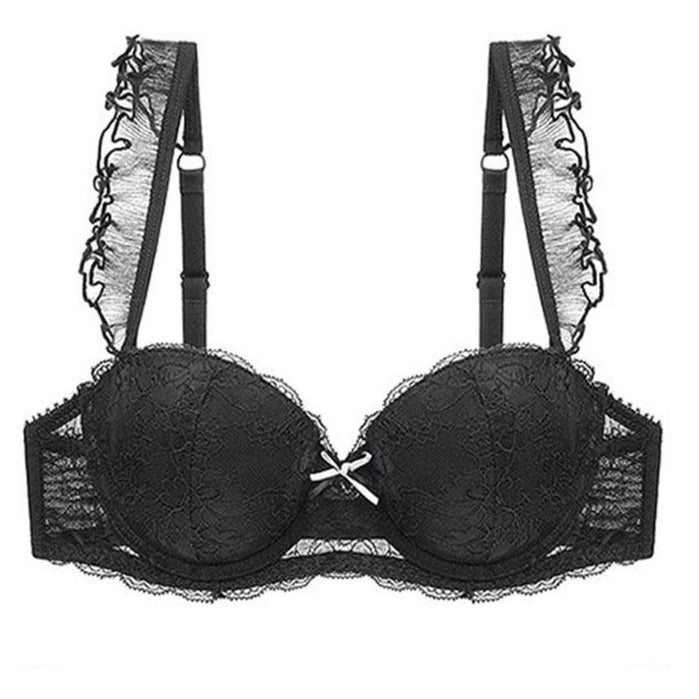 Push-Up Padded Cotton Spandex Bra with Floral Pattern, Underwire, Three Hook, and Eye Closure