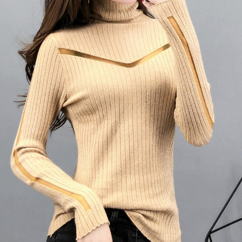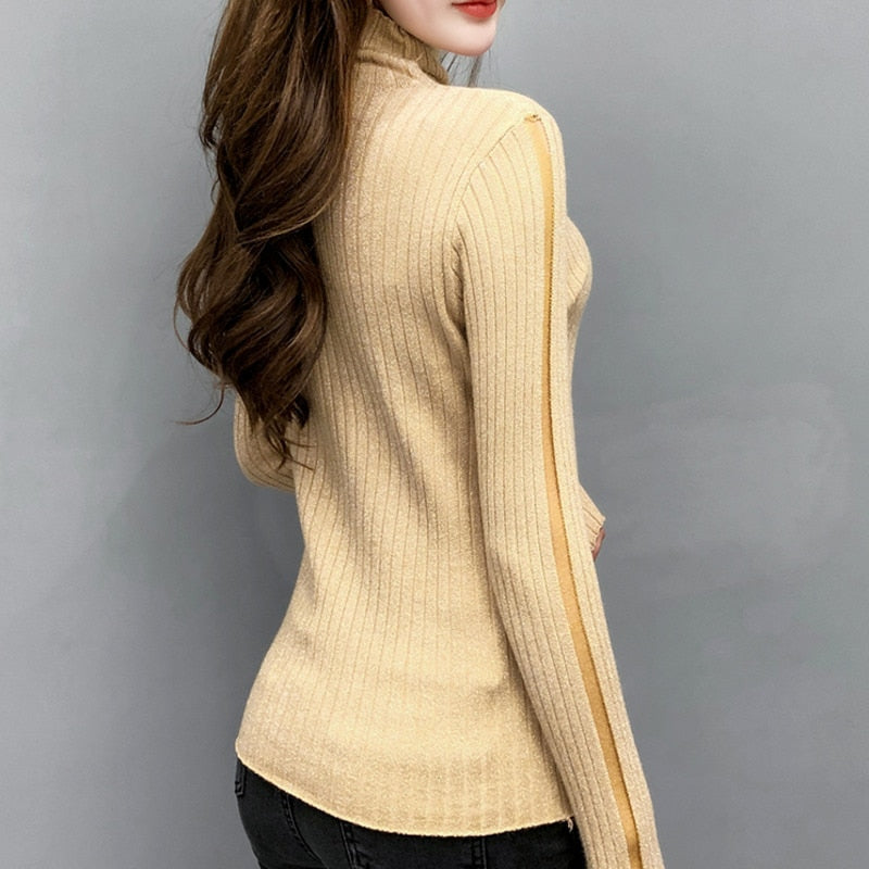 Computer Knitted Cotton Acrylic Turtleneck Blouse