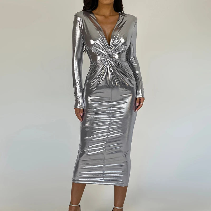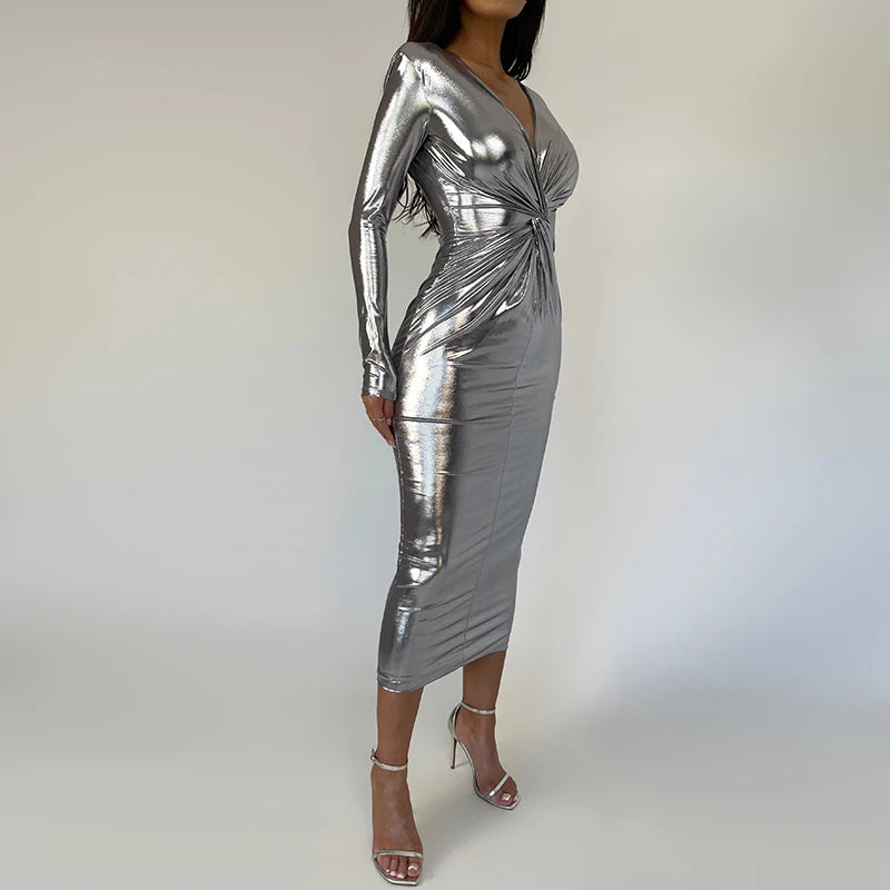 Effortless elegance meets comfort in our Forgot How To Be Happy Midi Dress. Made from a blend of polyester and spandex, this ankle-length dress features a slim-fit design and a flattering V-neckline. The draped decoration and full sleeves add a touch of sophistication, making this the perfect casual dress for any occasion.