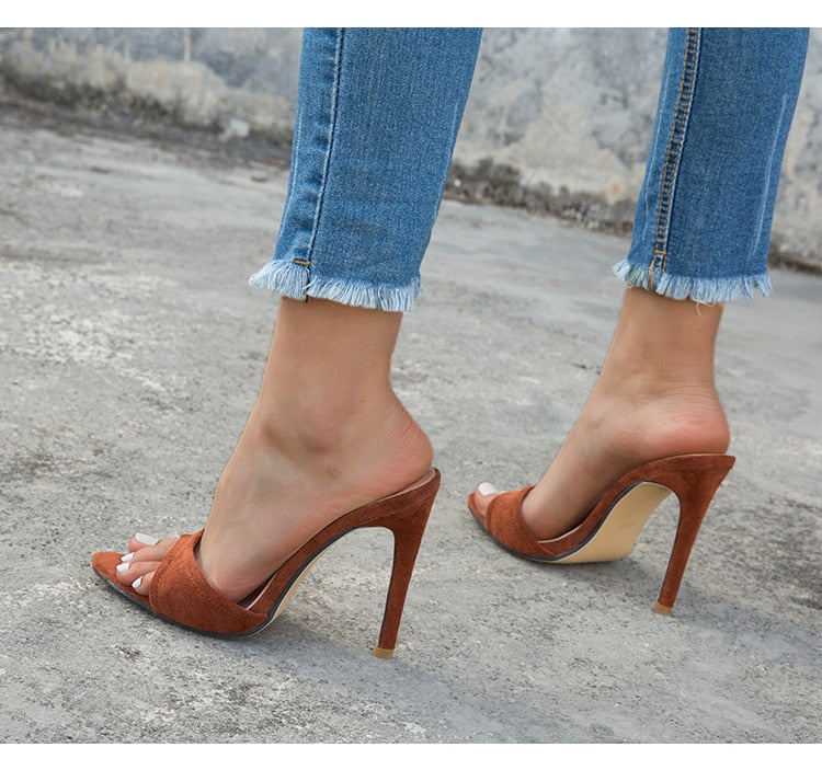 Our Kissin' You Each Morning Stiletto Sandals feature a flock upper and a PU lining with a rubber outsole and a PU insole. The sandals provide a basic style and a thin heels design with a heel height of 11 cm. Combined, this ensures long-lasting comfort and stability with every step.