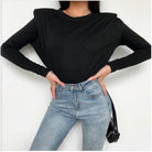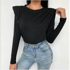 Cotton Polyester Solid Patterned Long Sleeved Padded Shoulder Tee