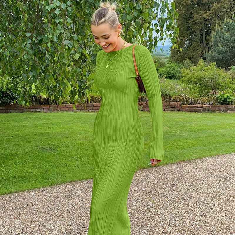Fall into style with this maxi dress! This elegant dress is made with a luxurious blend of polyester and spandex, providing a comfortable and flattering fit. Its simple yet chic solid design makes it a versatile wardrobe staple. Perfect for any occasion!