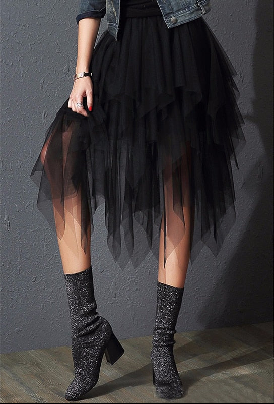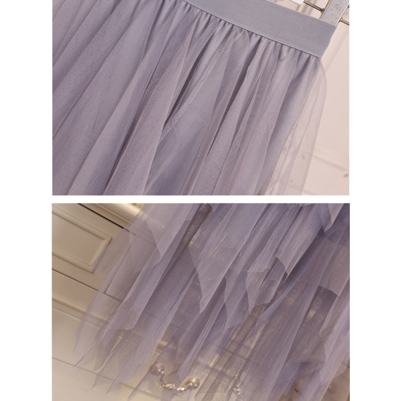 A-Line Solid Color Tulle Skirt with Polyester Material