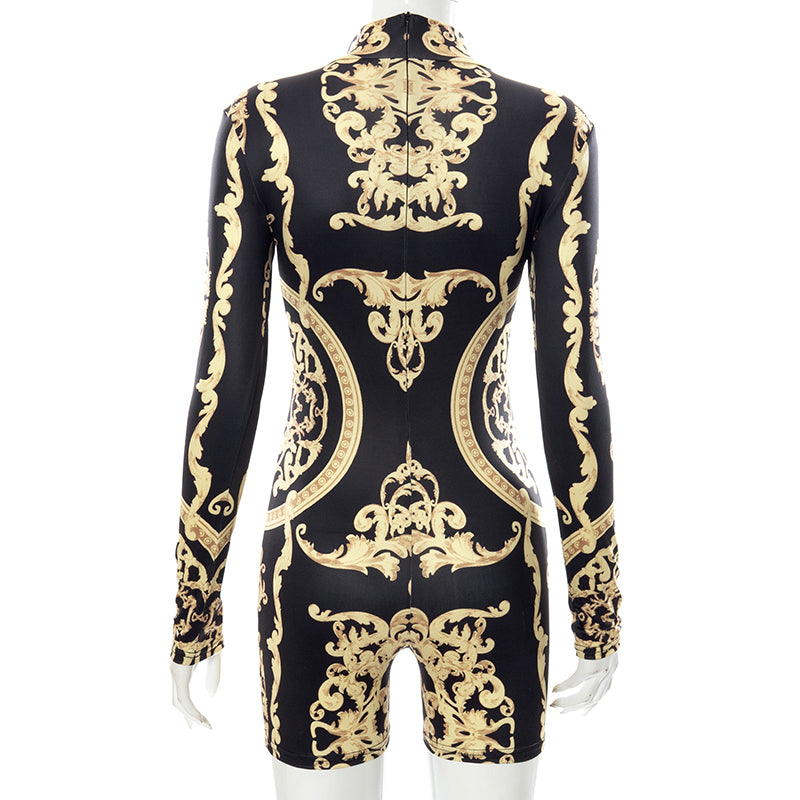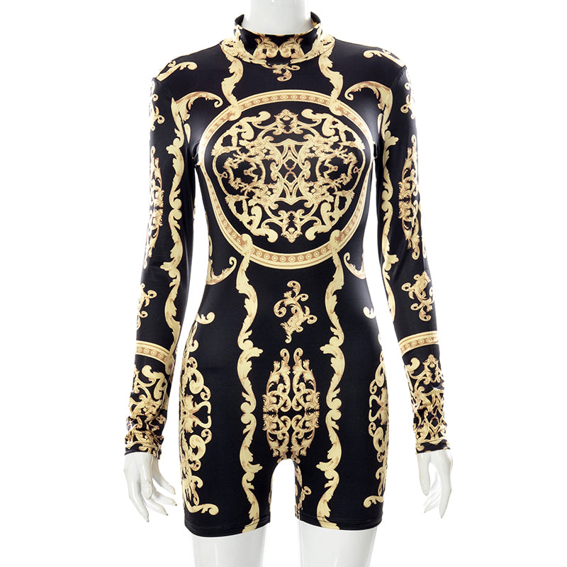 Women will love the look and feel of this stylish romper that is made from high-quality polyester. The short pants and long sleeves offer a comfortable fit that is sure to become a favorite style. A comfortable and fashionable European print pattern is sure to become a staple piece in her closet.
