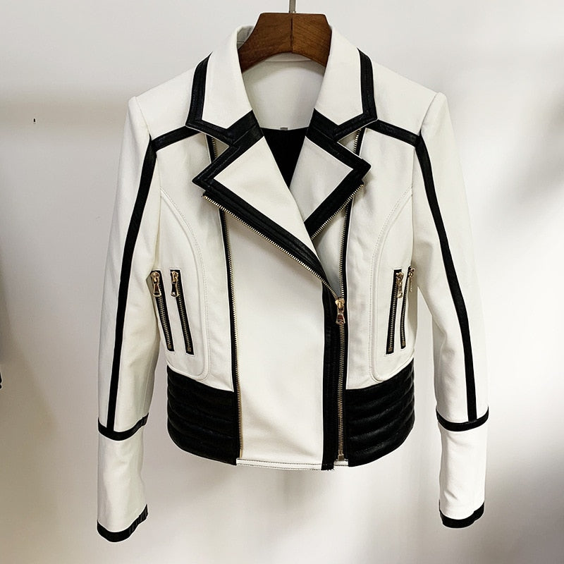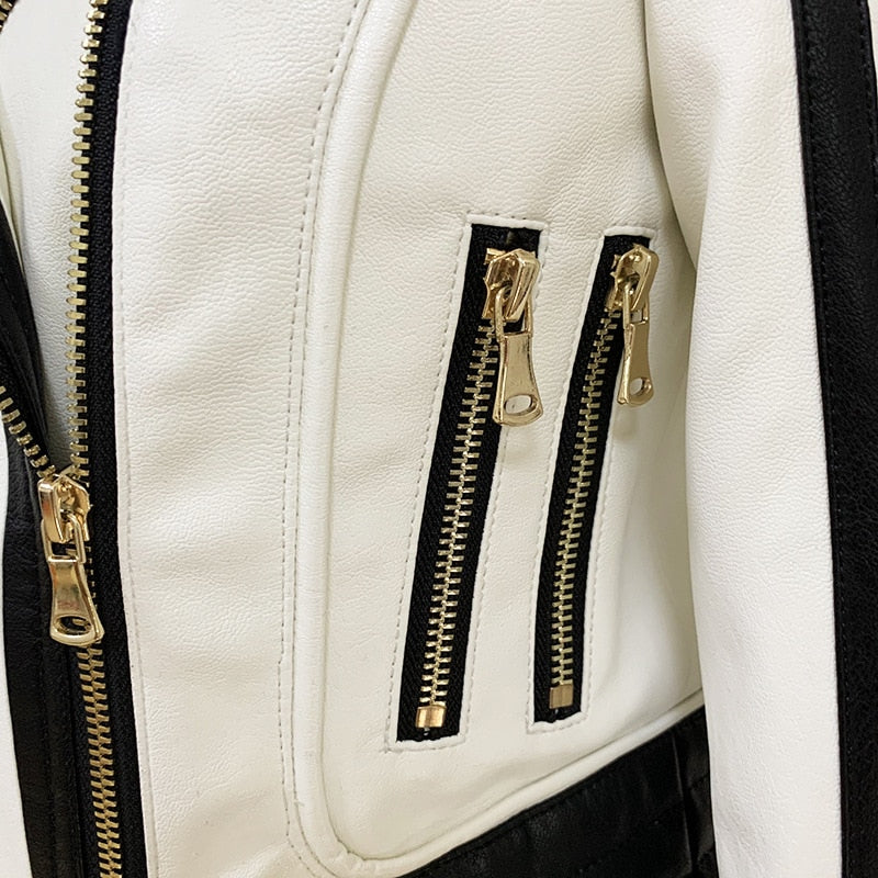 Casual Jacket With Zipper Closure, Turn-Down Collar, And PU Material