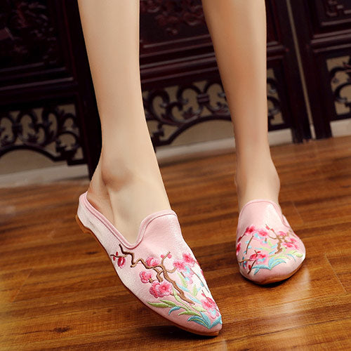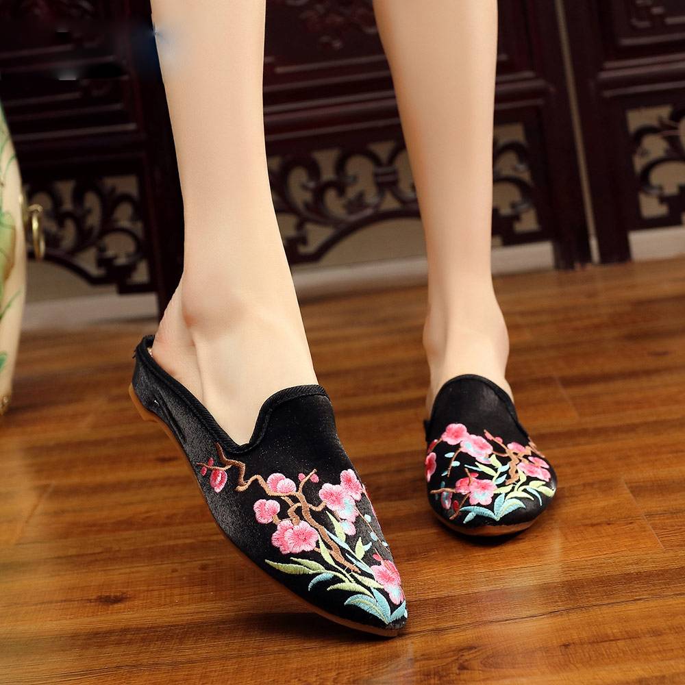 Cotton Fabric Beautiful Floral Pattern Mules Shoes