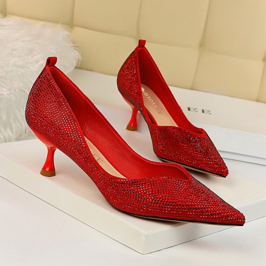 Mesh Full Rhinestone Spike Scarpin Shoes