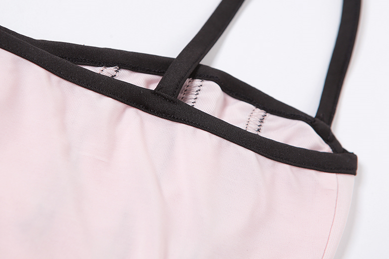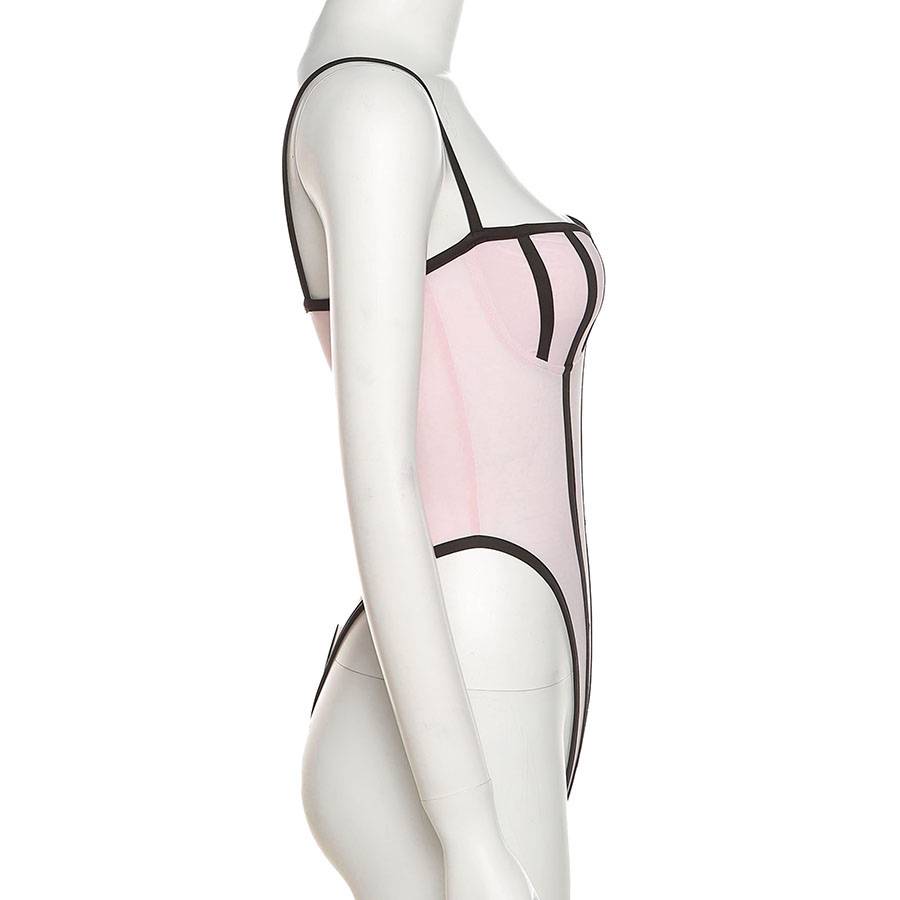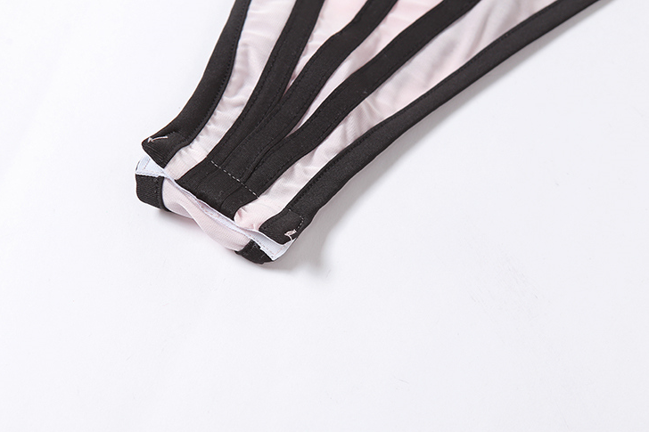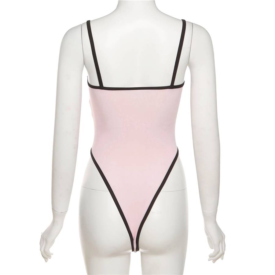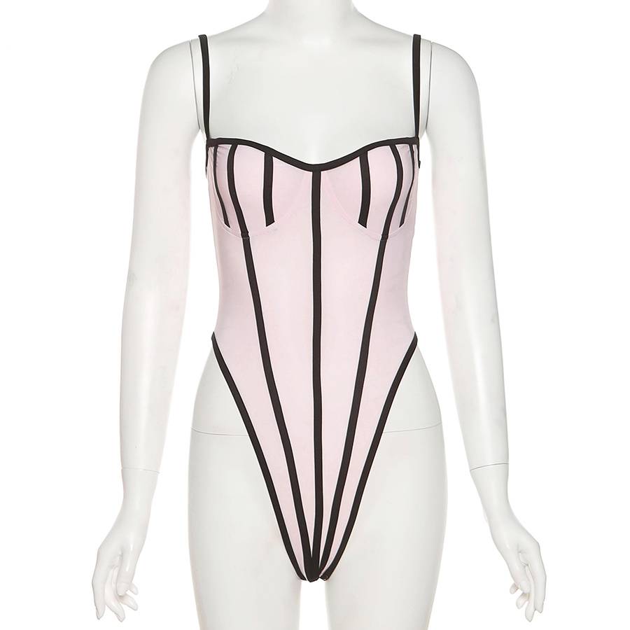 Striped Patterned Sleeveless Bodysuit Made From Polyester Spandex Material with Spaghetti Strap