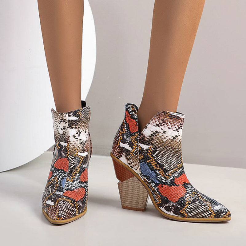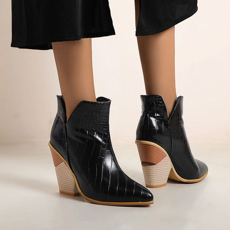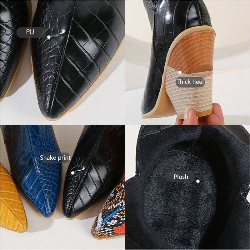 PU Leather Rubber Short Plush Solid Patterned Pointed Toe Slip-On Ankle Boot