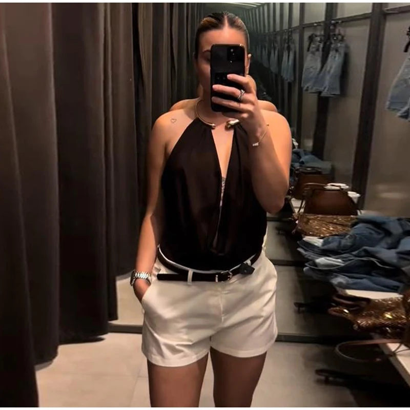 This bold bodysuit combines the smooth durability of polyester with the breathable comfort of cotton, creating a sleek, solid piece that commands attention. Designed to fit like a second skin, it empowers you to express your fearless style with confidence and edge. Perfect for those who dare to stand out.