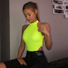 Knitted Polyester Solid Patterned O-Necked Neon Bodysuit