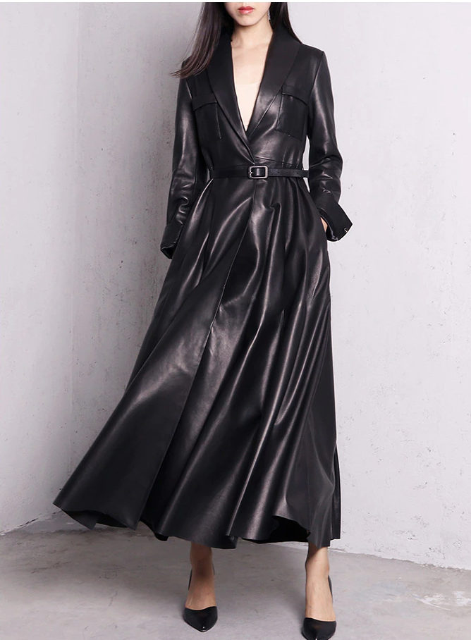 A stylish women's coat that is sure to become a staple of her wardrobe for years to come. Crafted from a soft and durable PU leather. The double-breasted design has a shawl collar that gives it a stylish and feminine finish. The two front pockets are a practical finishing touch that makes it highly functional.