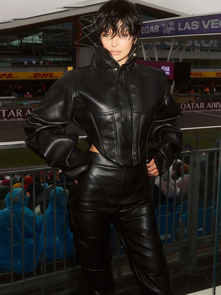 The Shadow Ease Crop Jacket is edgy sophistication in solid form. The sleek, cropped silhouette cuts through the noise, while the supple leather delivers that unmistakable edge. Built to flex and move with you, this piece transforms any outfit into a power statement. For those who refuse to blend in.