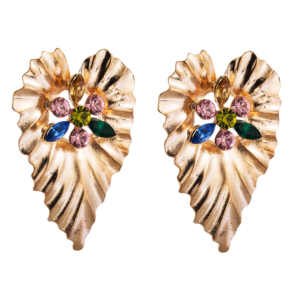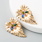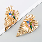Big Leaf Push Back Earrings With Zinc Alloy Material And Rhinestone Decoration