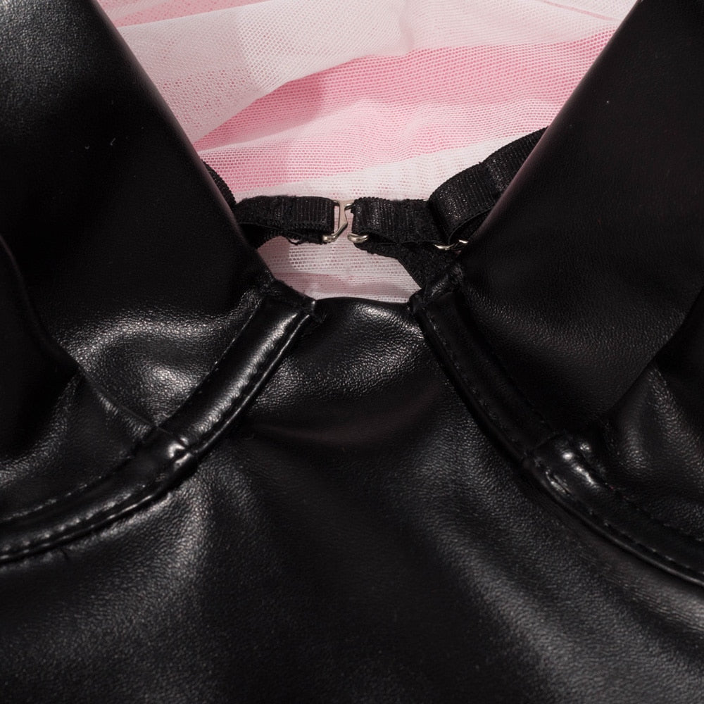 Dreamer Queen Lingerie is made from soft, synthetic leather, with a solid black color and hollow-out accents. The lingerie is designed to provide comfort, beautiful style, and a lasting fit.