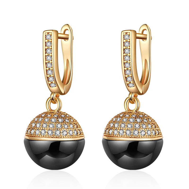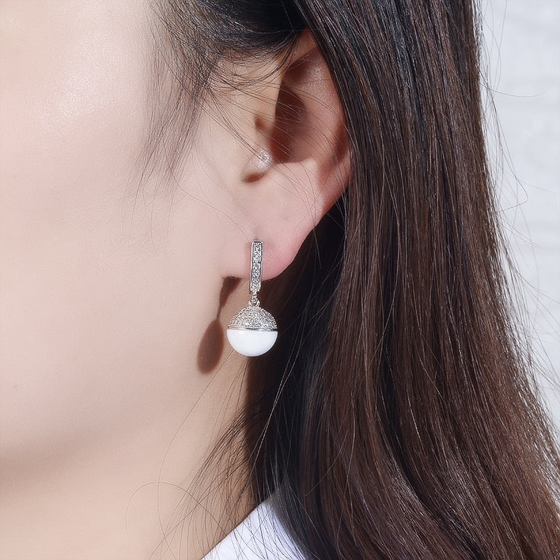 Ceramic Ball Copper Zirconia Latched Back Drop Dangle Earrings