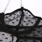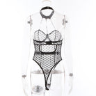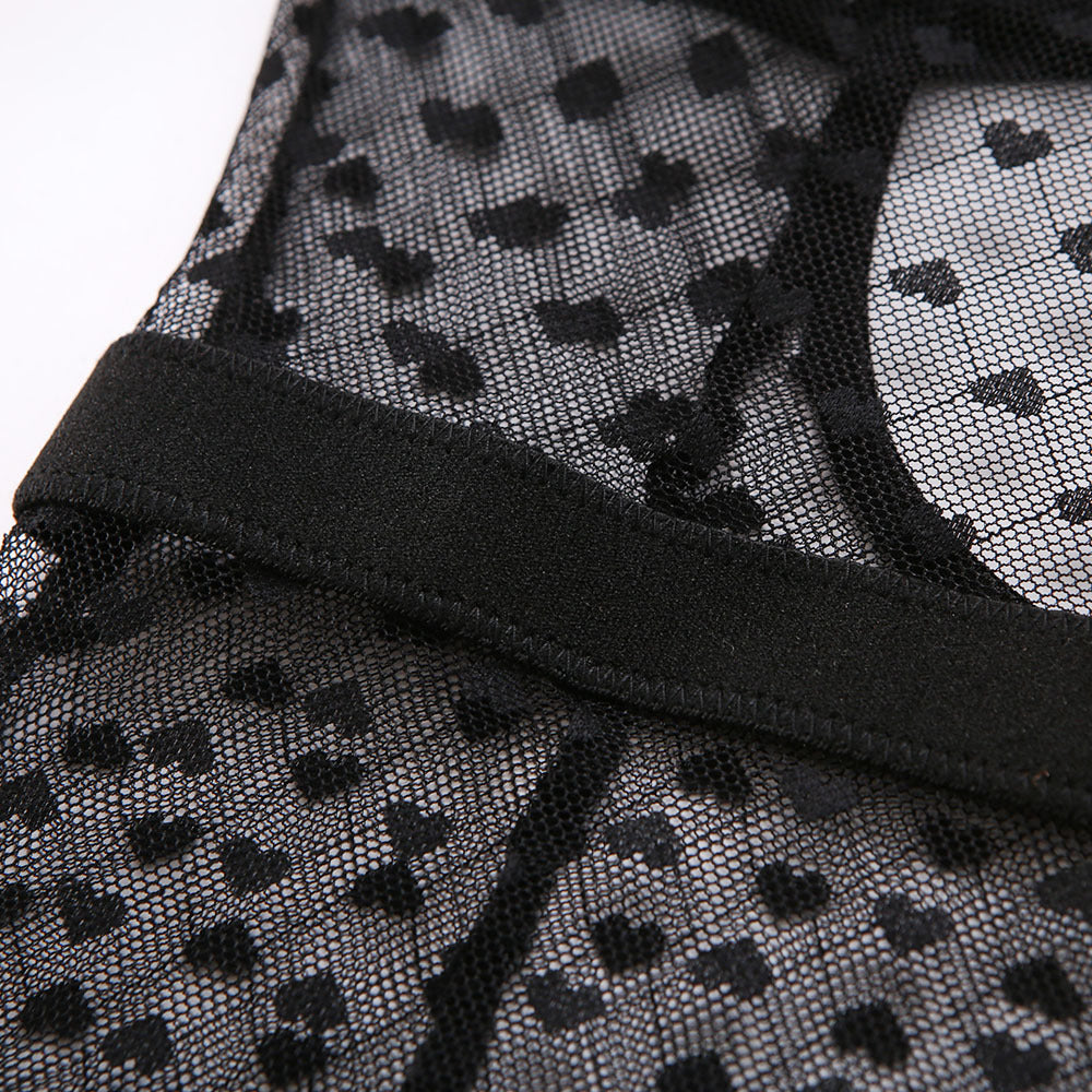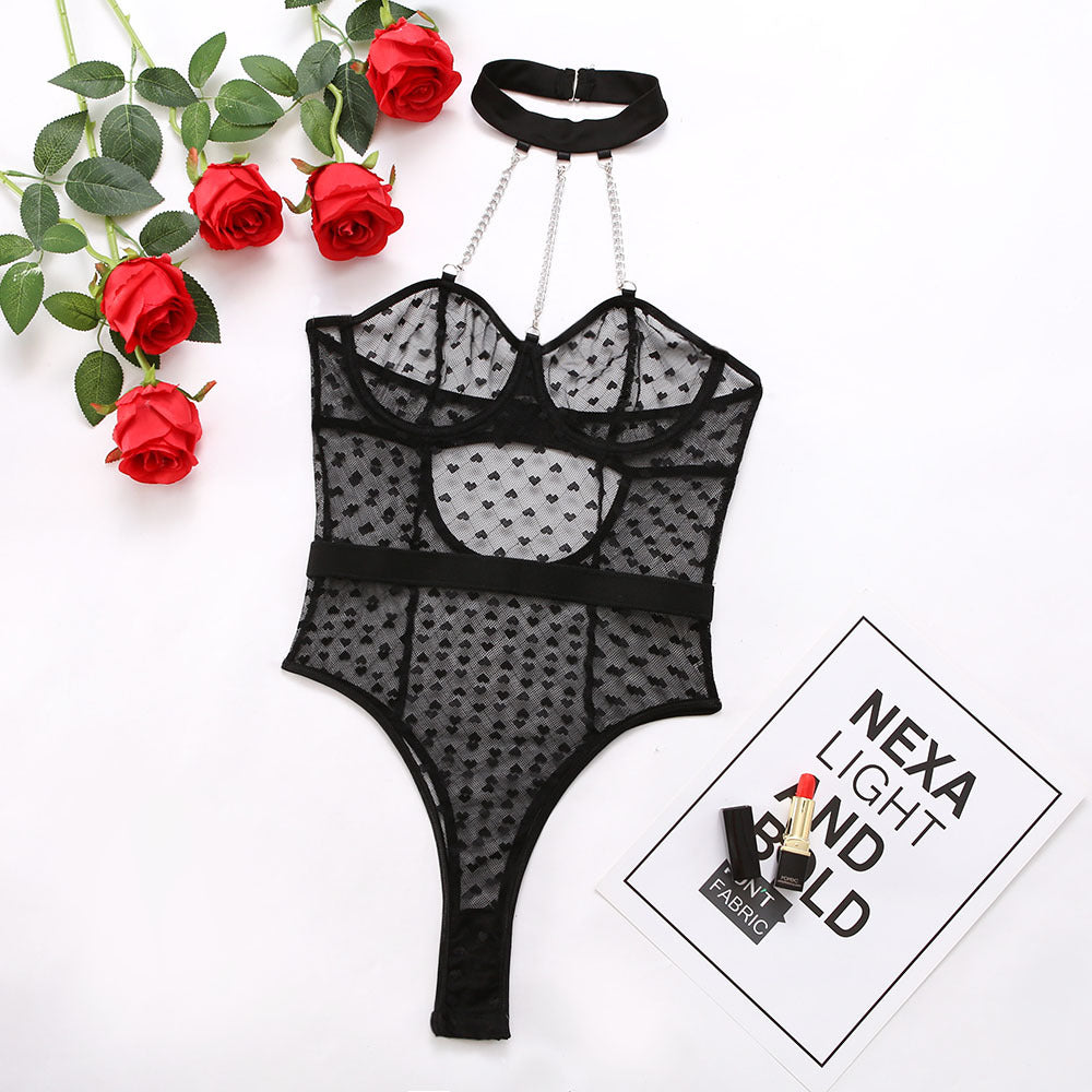 These are women's teddies made of linen and see-through. They are black in color and have a chain decoration.