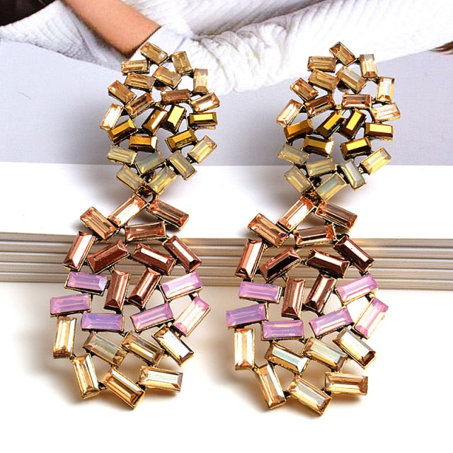 Zinc Alloy Drop Dangle Earrings with Mini Rectangular Rhinestone