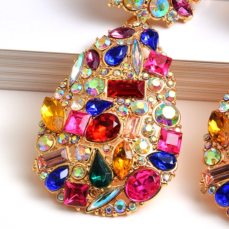 Colorful Rhinestone Drop Dangle Earring with Zinc Alloy Material