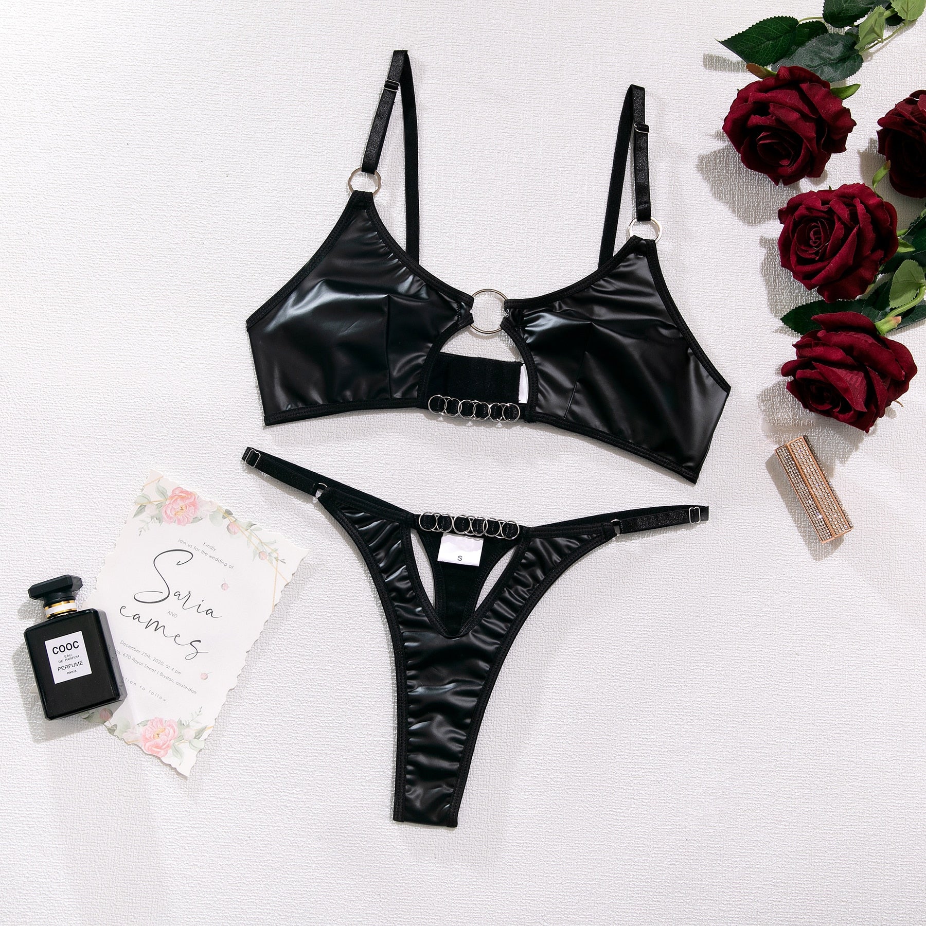 Look your best in this beautiful lingerie that is designed for a fashionable and sophisticated look. Enjoy the luxury of knowing you only have to take off to get ready for the night. This bra set features adjustable straps that can fit any bust size. An ultra-thin thong is a perfect choice for any occasion.