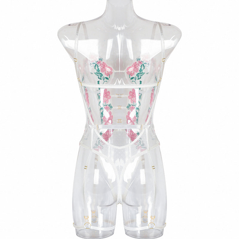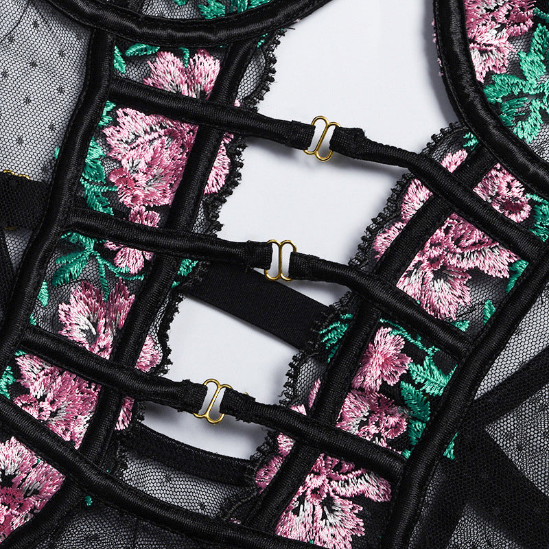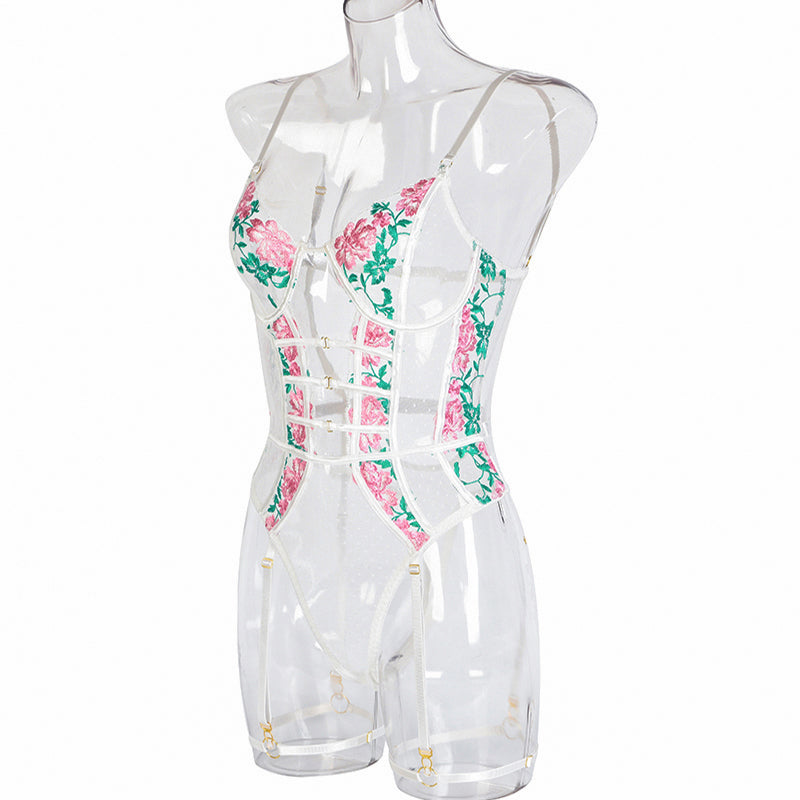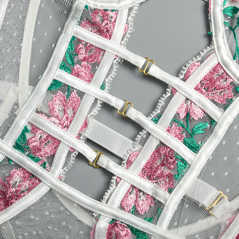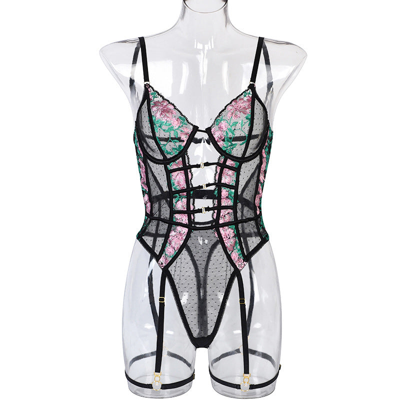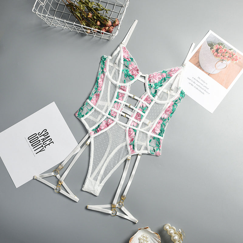 See-Through Polyester Lace Teddies with Floral Embroidery Decoration