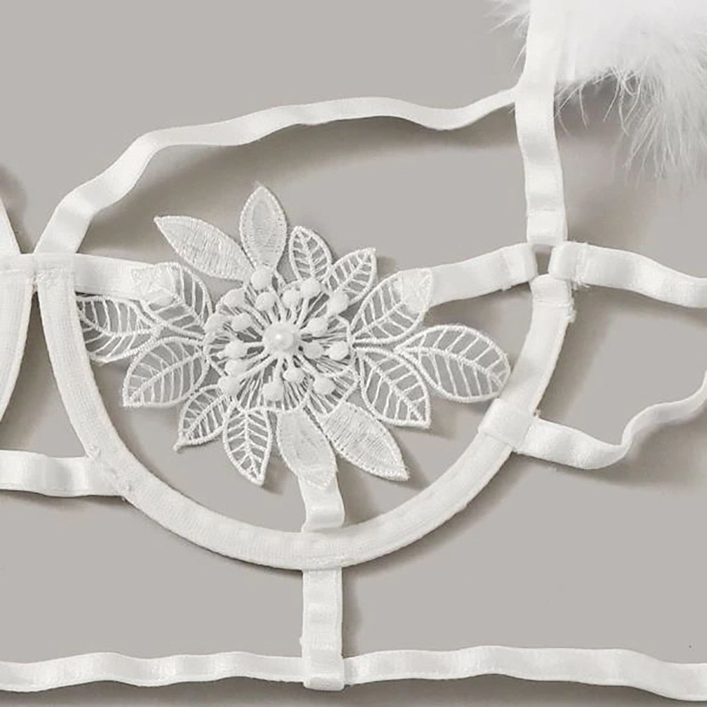 Solid Color Lace Polyester Lingerie Sets with Fur Decoration