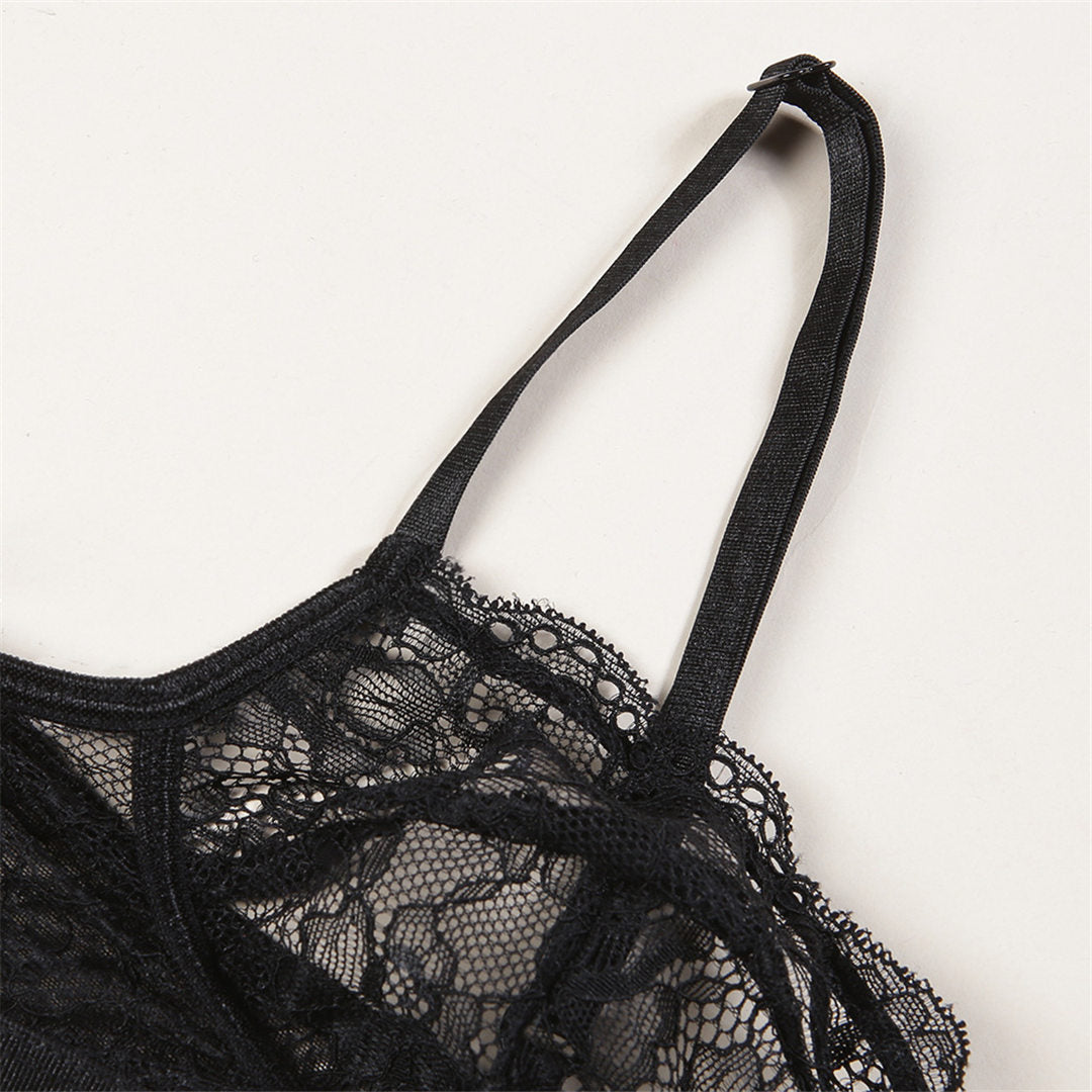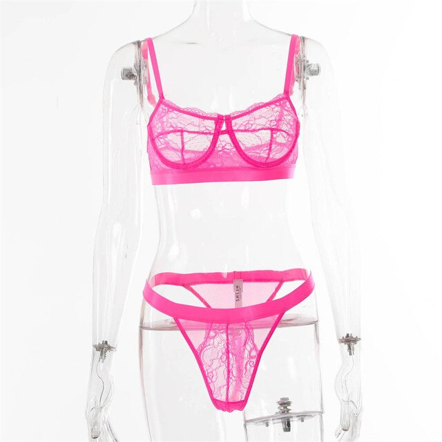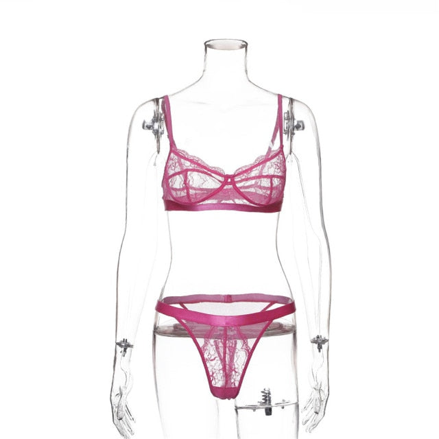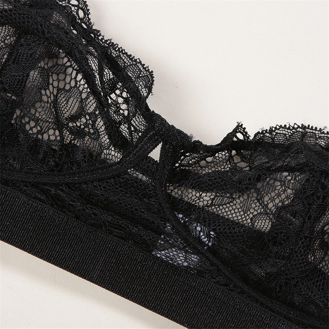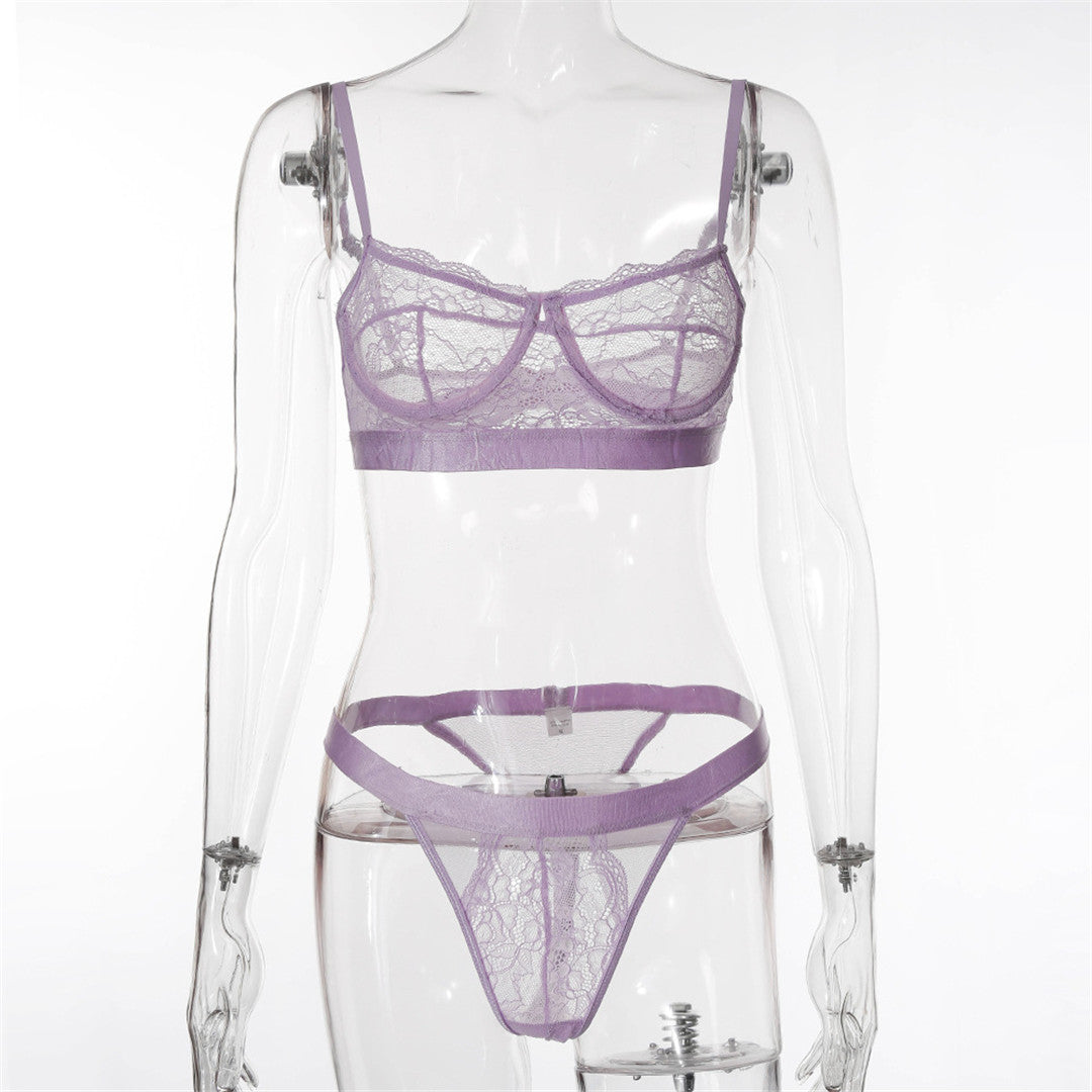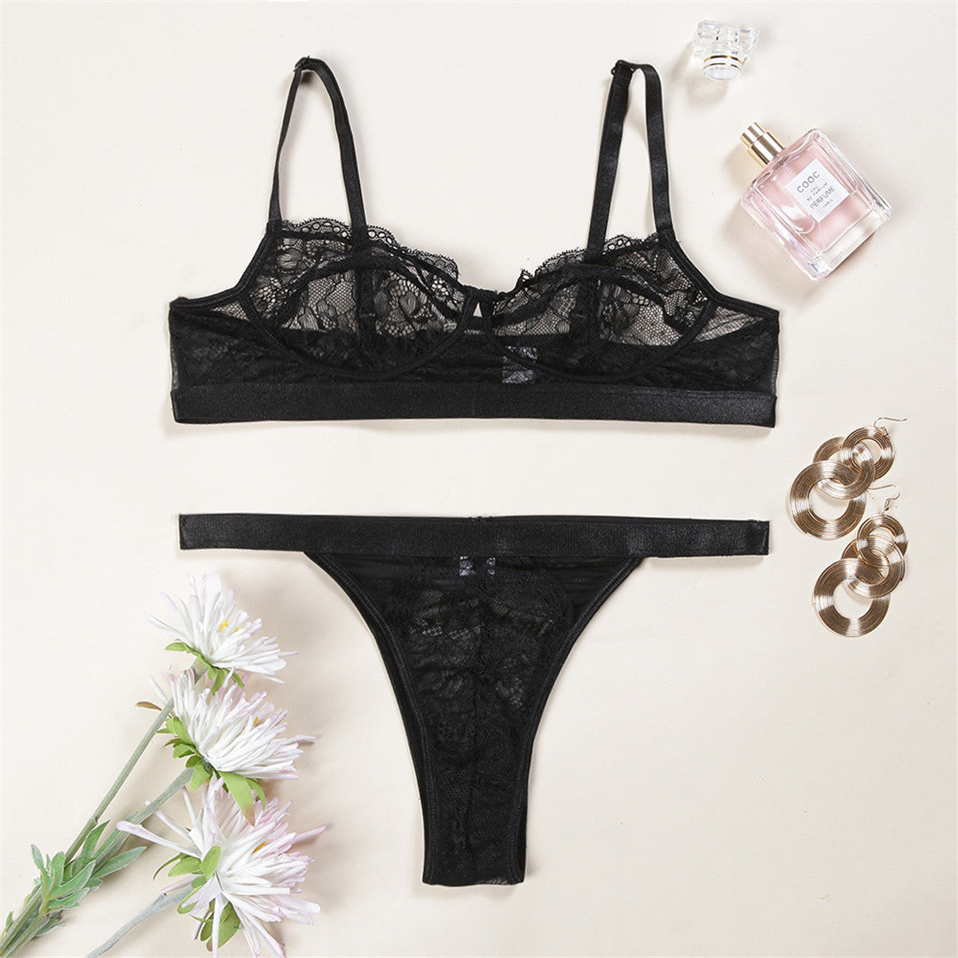 See-Through Lace Polyester Spandex Bra Set with Solid Trimmings and Underwire Support