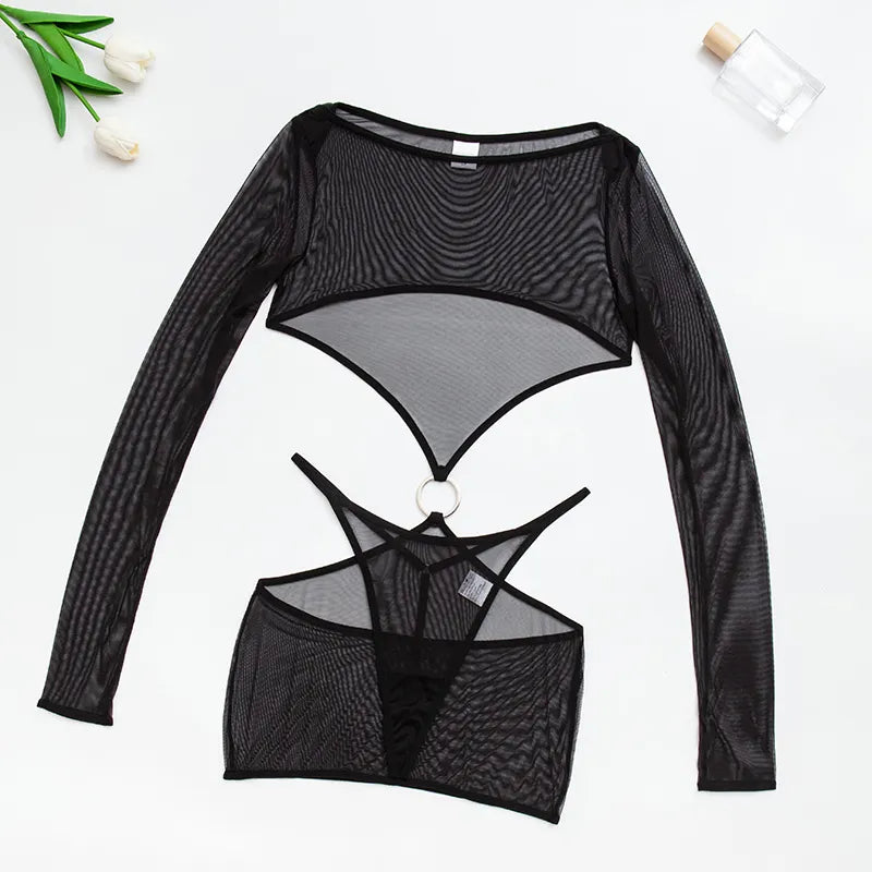 Sleek and sophisticated, this lingerie set is a must-have for any lingerie enthusiast. Crafted from a linen blend fabric, this lingerie set provides a soft and comfortable fit. With its solid design, this lingerie set is perfect for a romantic night.