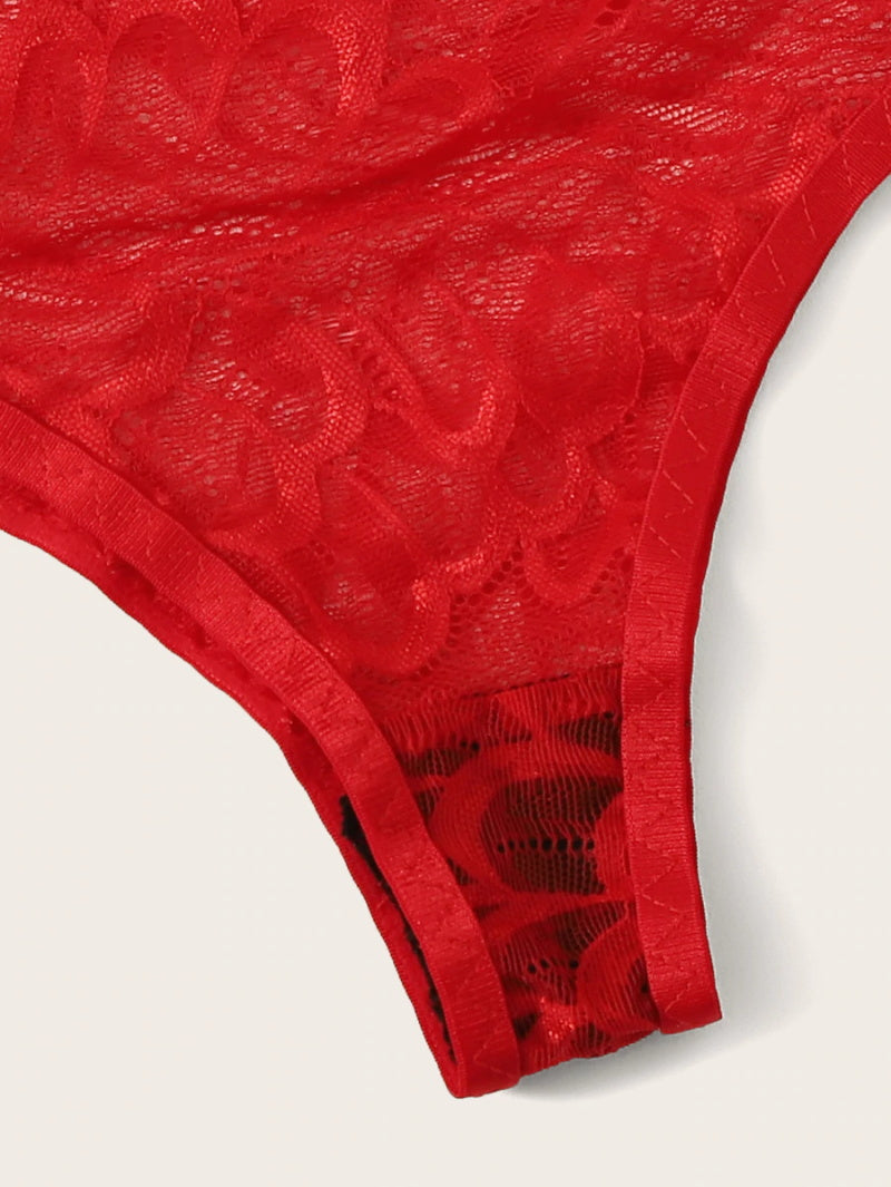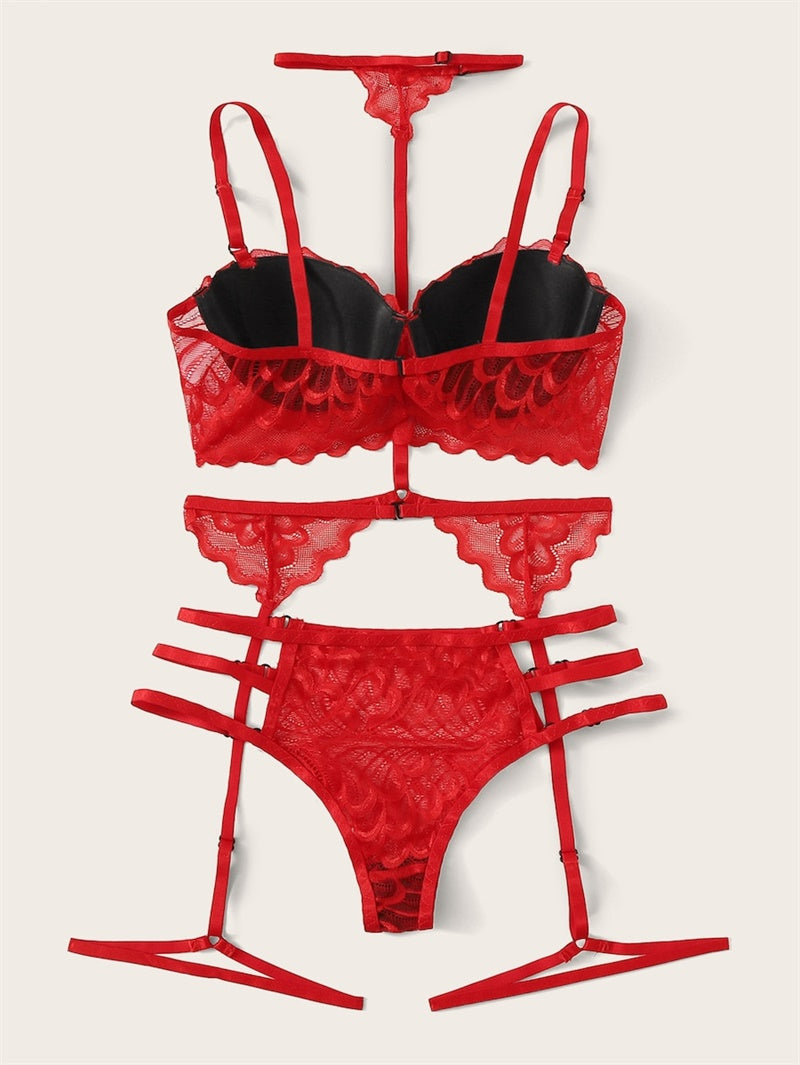 Cotton Polyester Lingerie Set with Neck Collar, Three Strap Style Panty, and Lace Decoration