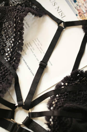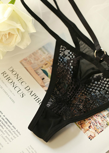 Polyester Spandex Bra Set with Hollow Out Lace and Metal Ring