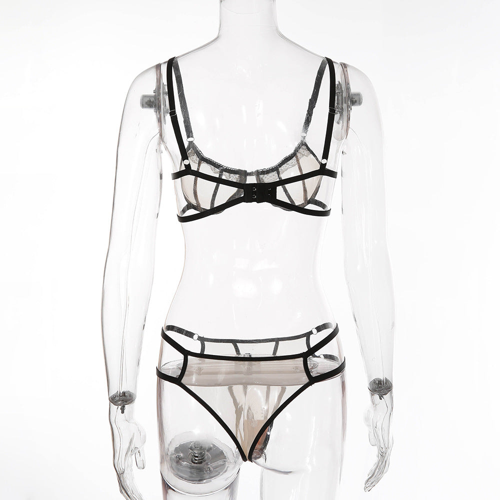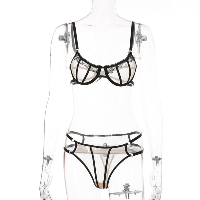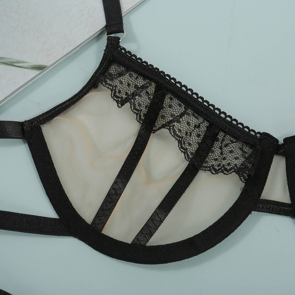 Polyester Bra Set with Stripe Style and Lace Trimmings Decoration
